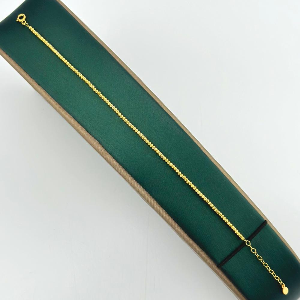 أسوارة من الذهب الأصفر عيار 21 من مجوهرات الشلوي، تتألق بكرات الليزر اللامعة كنجوم متلألئة حول معصمك، تضفي لمسة من السحر والبريق على كل إطلالة.