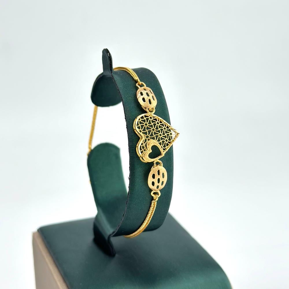 طقم ذهبي كبير للعروس، يحمل اسم "طقم المحبة"، مصنوع من ذهب عيار 21. يتميز بتصاميمه الأنيقة التي تتجسد في أشكال القلوب الرقيقة. يتألف الطقم من عقد ثلاث ادوار ساحر، وحلق يعكس رقة التفاصيل، وأسوارة أنيقة، وخاتم يعبر عن الحب والروعة. قطعة مميزة تعبر عن أسمى مشاعر الحب وتمنح العروس إطلالة حالمة في يومها الخاص.
