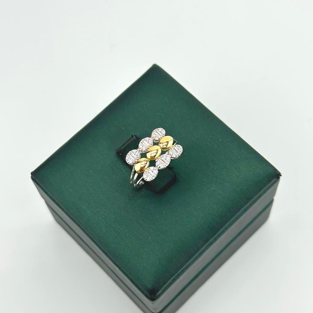طقم "الملكة" مصنوع من الذهب الأبيض عيار 18 بتصميم فاخر، يتداخل معه الذهب الأصفر البراق , وتزينه فصوص الزركون بتصميم الألماس وقصات الباقيت اللامعة. يجمع هذا الطقم بين بريق الألماس ورونق الأشكال الأنيقة، ليضفي لمسة من السحر والرقي على إطلالتك. قطعة مثالية تعبر عن الفخامة والأنوثة بكل تفاصيلها.