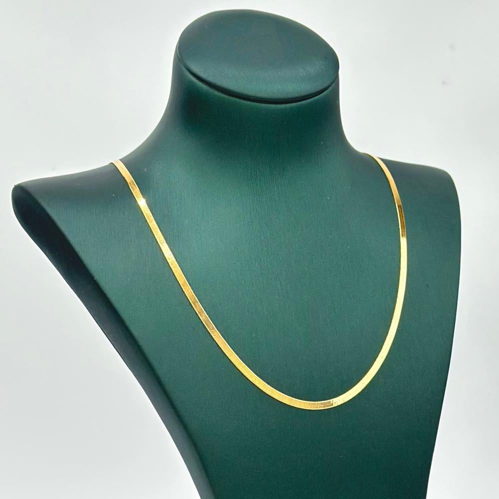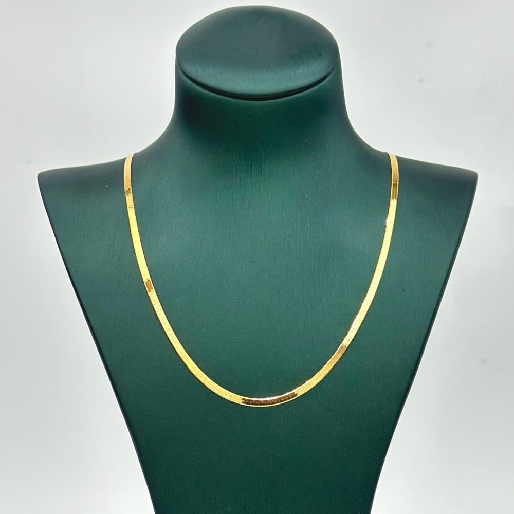 عقد ذهب فلات عيار 21 بوزن 7.8 جرام، تصميمه الناعم والبسيط يعطي إحساس بالفخامة الهادئة التي تليق بكل إطلالة. قطعة كلاسيكية أنيقة تضيف لمسة راقية سواء مع الملابس اليومية أو السهرات.