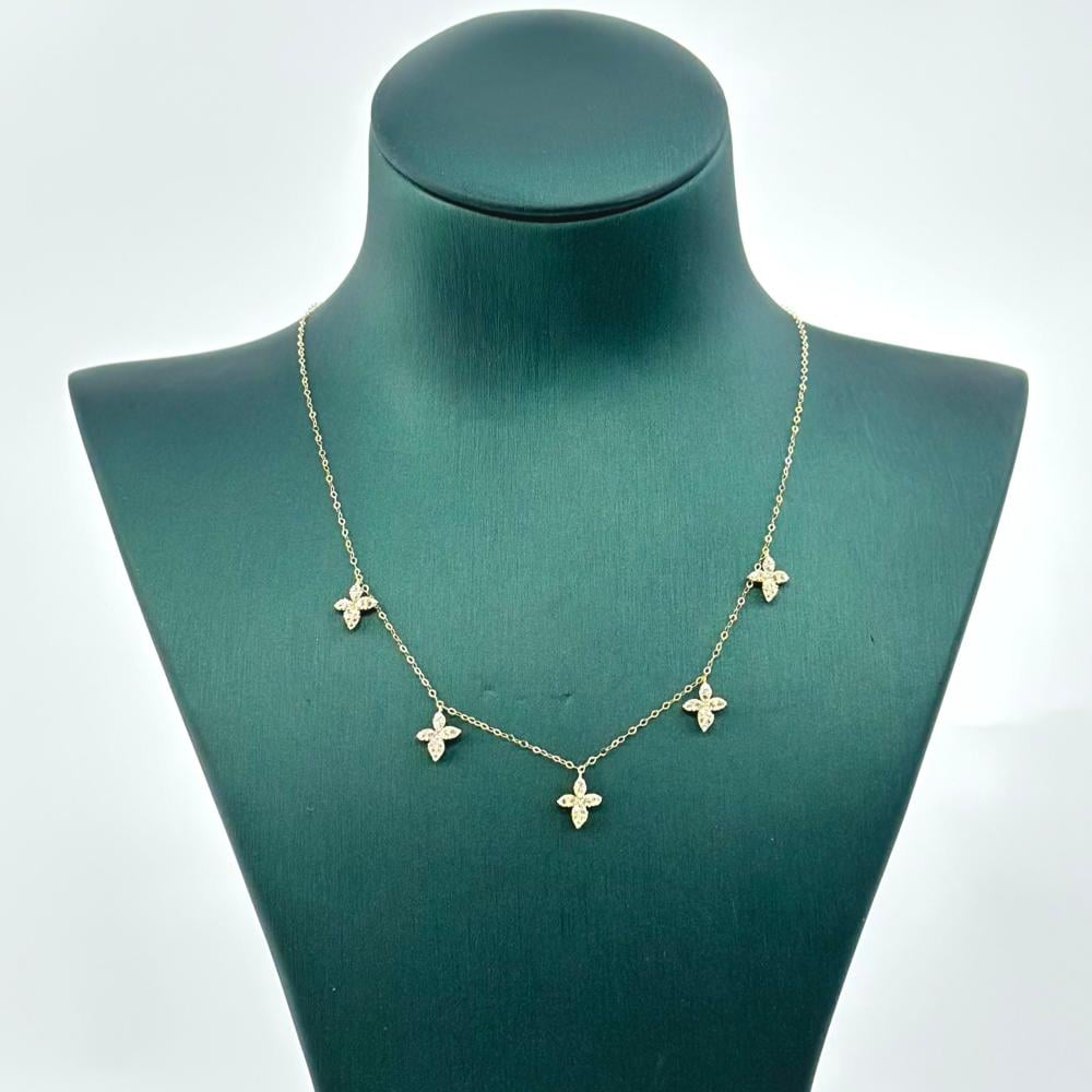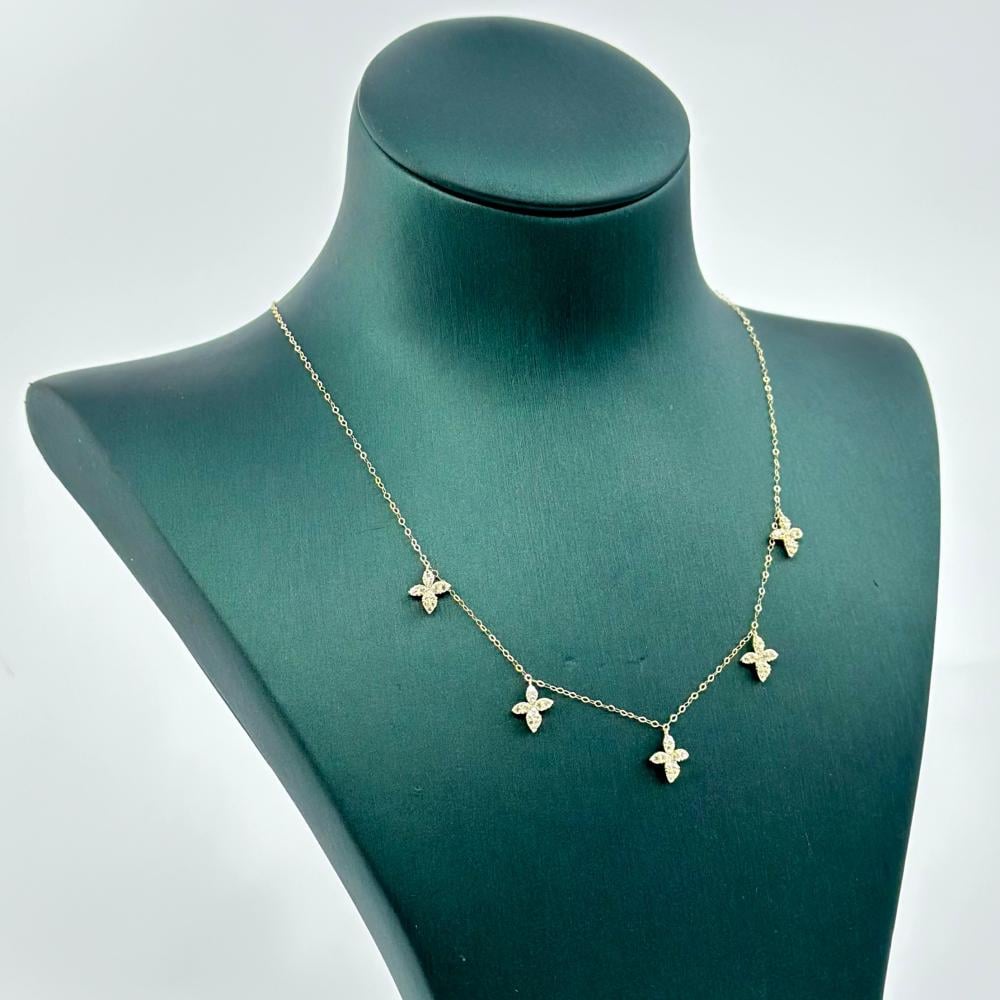 قلادة ذهبية فاتحة براقة، تتلألأ كأشعة شمس متلألئة في الصباح الهادئ. تحمل في ثناياها الأحجار الزركونية، ترقص كالنجوم في سماء ليل مضيء بالأمل والجمال. رقة الذهب تعكس بريق الحب والرقة، كلمحة تذكير بالأوقات السعيدة واللحظات الثمينة. هي ليست مجرد قطعة مجوهرات، بل هي قصة عميقة تختزن في خيوطها ذكريات وعواطف لا تُنسى.