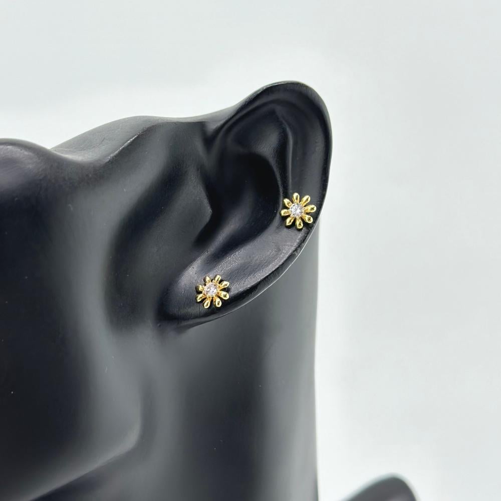 حلق اطفال طبي شكل الوردة - تصميم الماس ( 0.9 جرام - عيار 18 - KEA063 )