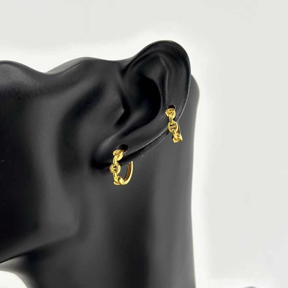 حلق ذهب أصفر عيار 21 بتصميم إيطالي أنيق يعكس الرقي والبساطة. يتميز هذا الحلق بلمساته الفنية المتقنة وخطوطه النظيفة، ليكون قطعة فريدة تضيف لمسة من الفخامة الإيطالية إلى إطلالتك. مناسب لكل المناسبات، ويجسد جوهر الأناقة العصرية.