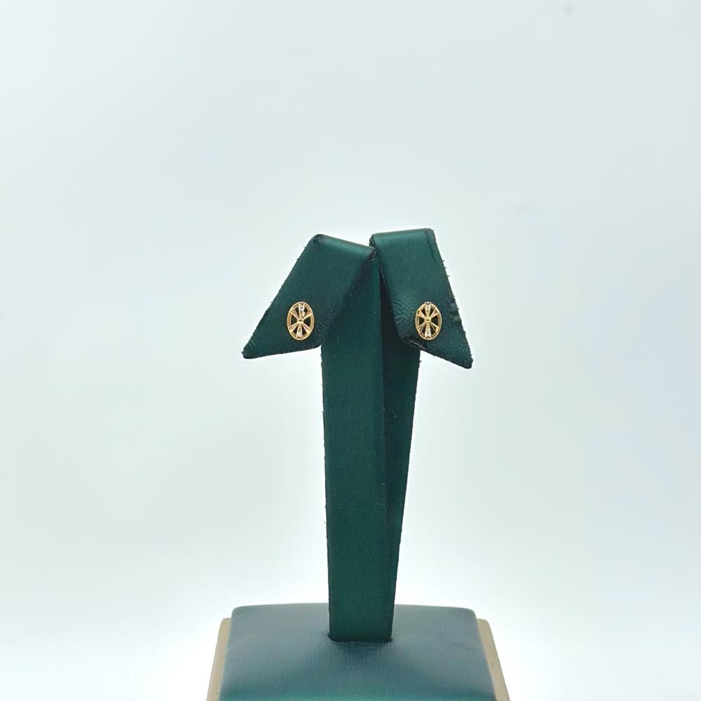حلق ذهب أطفال أصفر عيار 18 بتصميم ألماسي لطيف يزينه فصوص الزركون المتألقة. يعكس هذا الحلق بريقاً ناعماً يضفي على إطلالة الصغار لمسة من الجمال البسيط. قطعة صغيرة بحجمها، لكنها مليئة بالسحر والبراءة، لتكون إضافة مثالية لأيامهم المشرقة.