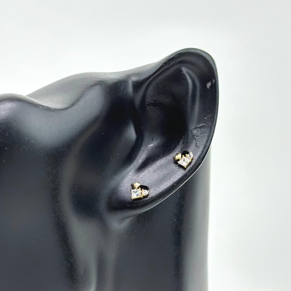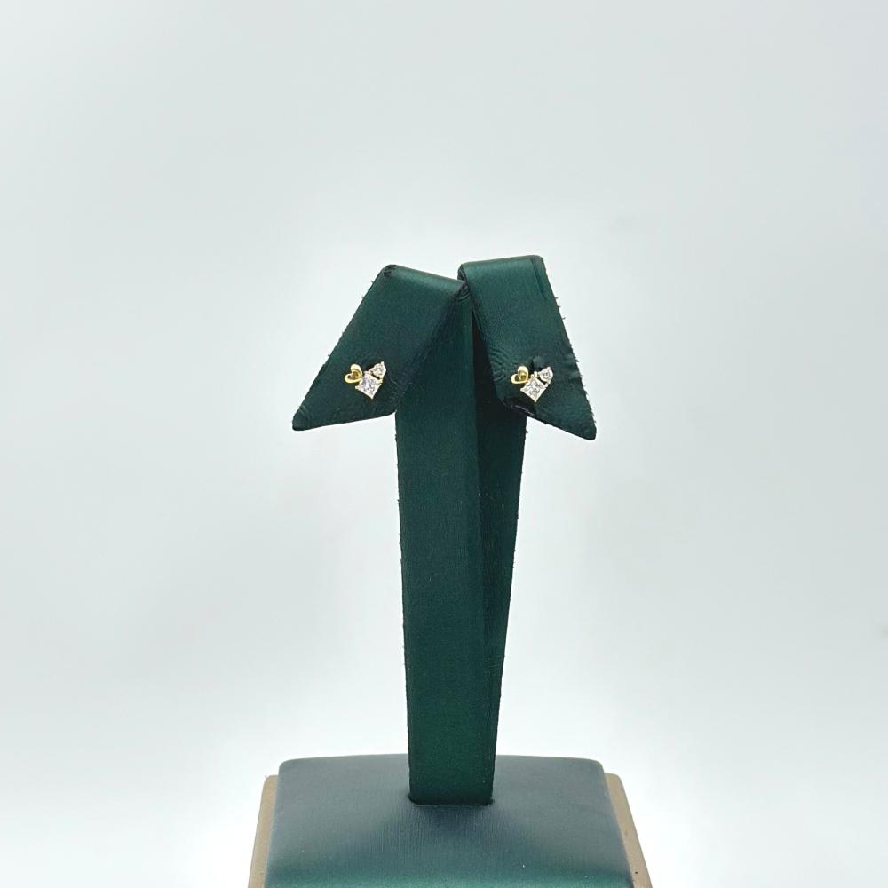 حلق ذهب أطفال أصفر عيار 18 بتصميم ألماسي لطيف يزينه فصوص الزركون المتألقة. يعكس هذا الحلق بريقاً ناعماً يضفي على إطلالة الصغار لمسة من الجمال البسيط. قطعة صغيرة بحجمها، لكنها مليئة بالسحر والبراءة، لتكون إضافة مثالية لأيامهم المشرقة.