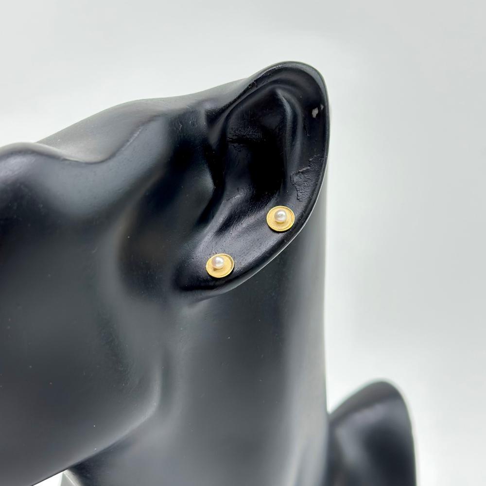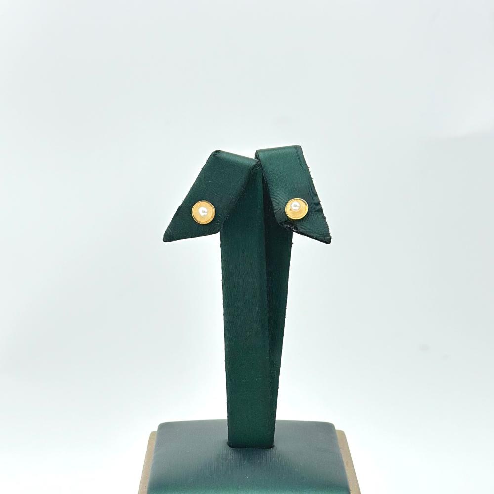 حلق ذهب أطفال طبي مّطعم بحبة لولو ( 0.4 جرام - عيار 18 - KEA076 )