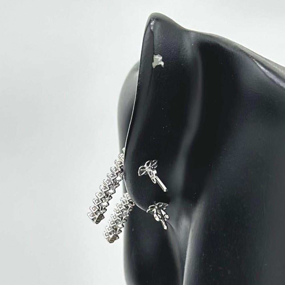 حلق الذهب عيار 18 من مجوهرات الشلوي يأتي بتصميم الماس أنيق يجسد روعة اللمعان. ينبض بأناقة لا مثيل لها، حيث تتداخل ألوان الذهب الأبيض مع انعكاس الضوء على فصوص الزركون، مما يضفي عليه لمسة من الفخامة والجمال.