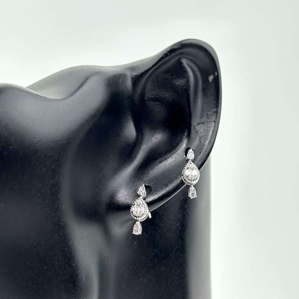 حلق الذهب عيار 18 من مجوهرات الشلوي يأتي بتصميم الماس أنيق يجسد روعة اللمعان. ينبض بأناقة لا مثيل لها، حيث تتداخل ألوان الذهب الابيض مع انعكاس الضوء على فصوص الزركون، مما يضفي عليه لمسة من الفخامة والجمال.