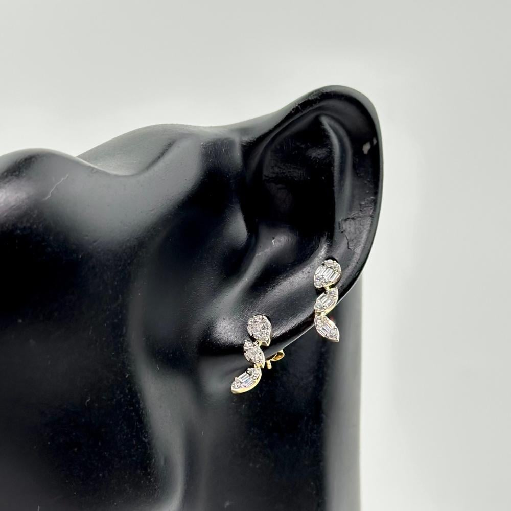 حلق الذهب عيار 18 من مجوهرات الشلوي يأتي بتصميم الماس أنيق يجسد روعة اللمعان. ينبض بأناقة لا مثيل لها، حيث تتداخل ألوان الذهب ابيض مع انعكاس الضوء على فصوص الزركون، مما يضفي عليه لمسة من الفخامة والجمال.
