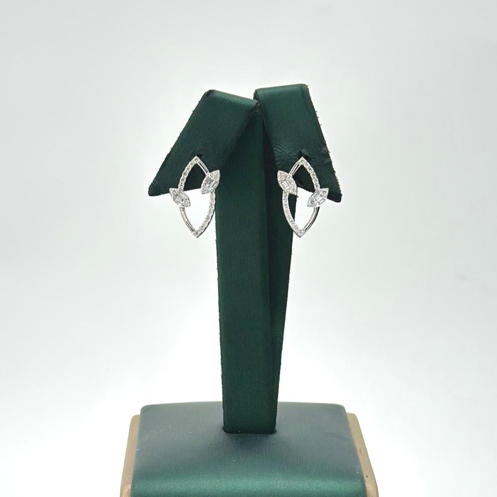 حلق الذهب عيار 18 من مجوهرات الشلوي يأتي بتصميم الماس أنيق يجسد روعة اللمعان. ينبض بأناقة لا مثيل لها، حيث تتداخل ألوان الذهب الأبيض مع انعكاس الضوء على فصوص الزركون، مما يضفي عليه لمسة من الفخامة والجمال.