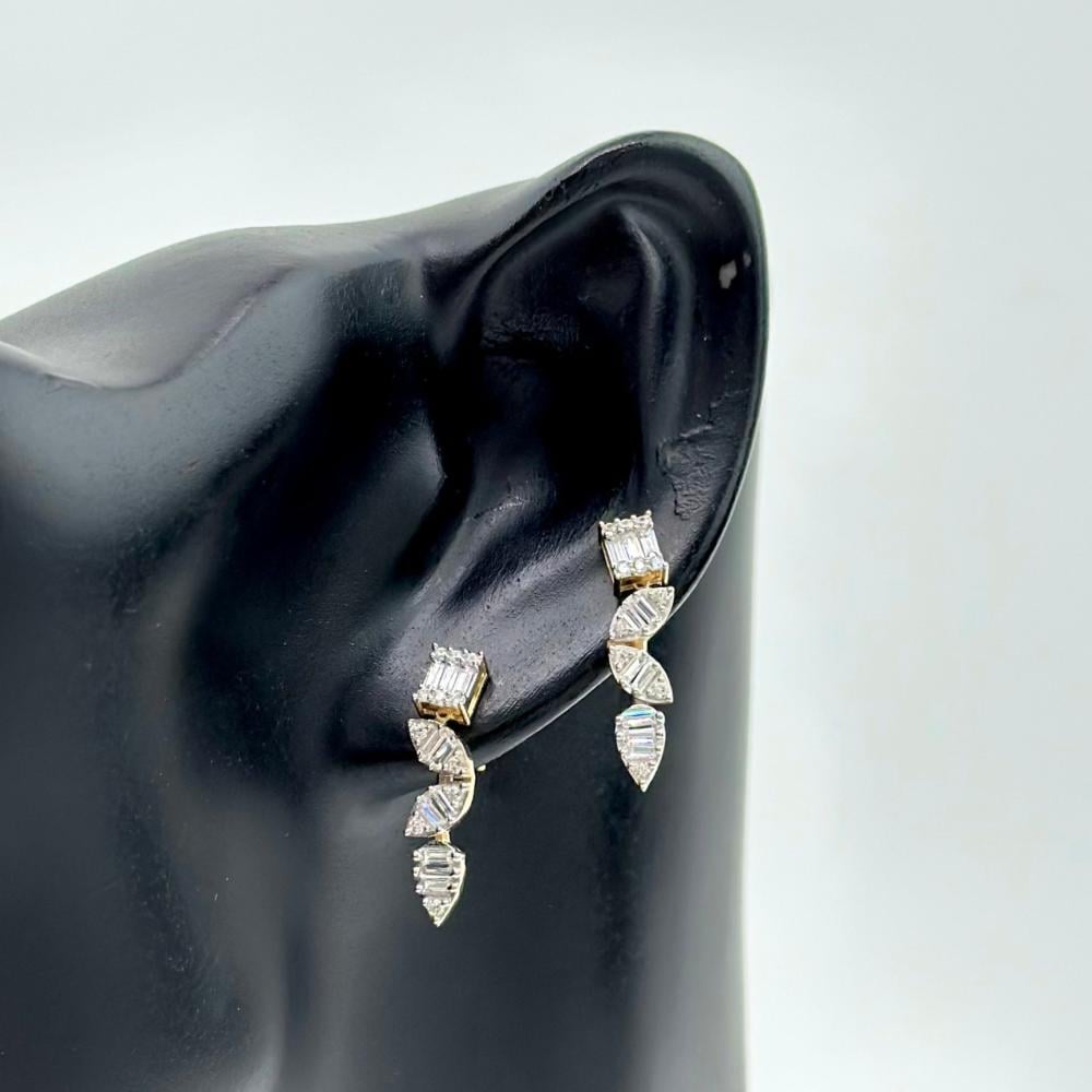 حلق ذهب اصفر تصميم ألماس عيار 18 من مجوهرات الشلوي