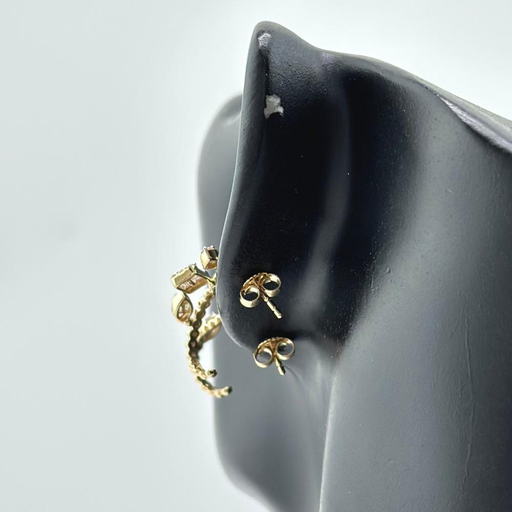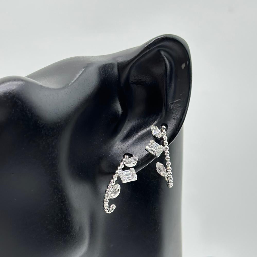 حلق الذهب عيار 18 من مجوهرات الشلوي يأتي بتصميم الماس أنيق يجسد روعة اللمعان. ينبض بأناقة لا مثيل لها، حيث تتداخل ألوان الذهب الأبيض مع انعكاس الضوء على فصوص الزركون، مما يضفي عليه لمسة من الفخامة والجمال.