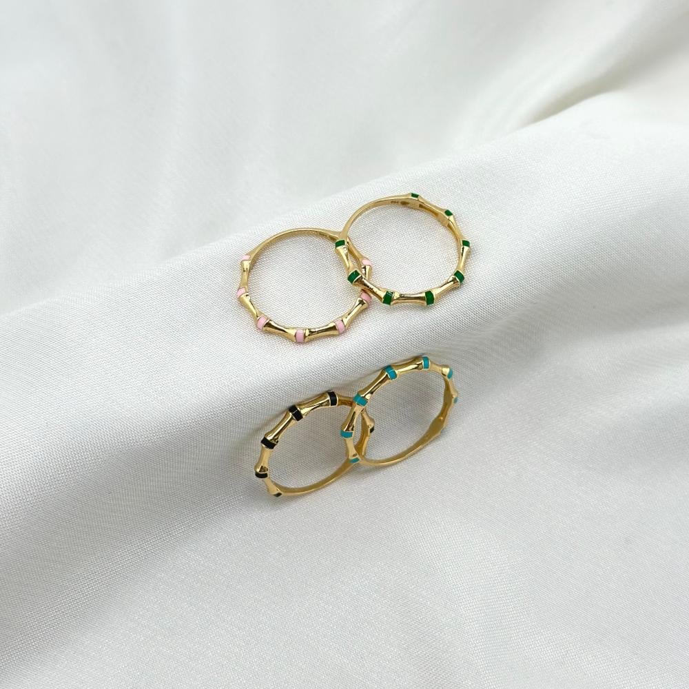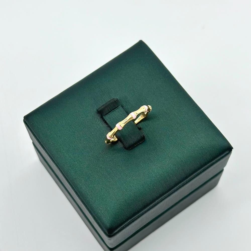 خاتم من الذهب الأصفر عيار 18 بتصميم بسيط وأنيق، مطعّم بلون المينا الجذاب. يجمع هذا الخاتم بين الحداثة والفخامة في قطعة واحدة، ليضفي لمسة من الحيوية والأناقة على يدك، ويكمل إطلالتك بأسلوب عصري ومميز.
