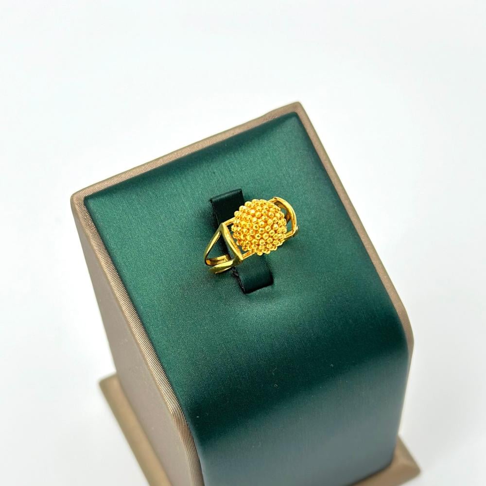 خاتم ذهبي رائع عيار 21 بتصميم قبة مزينة بكرات ذهبية صغيرة، يجسد الفخامة والتفاصيل الدقيقة، ليكون قطعة فريدة في مجموعتك.