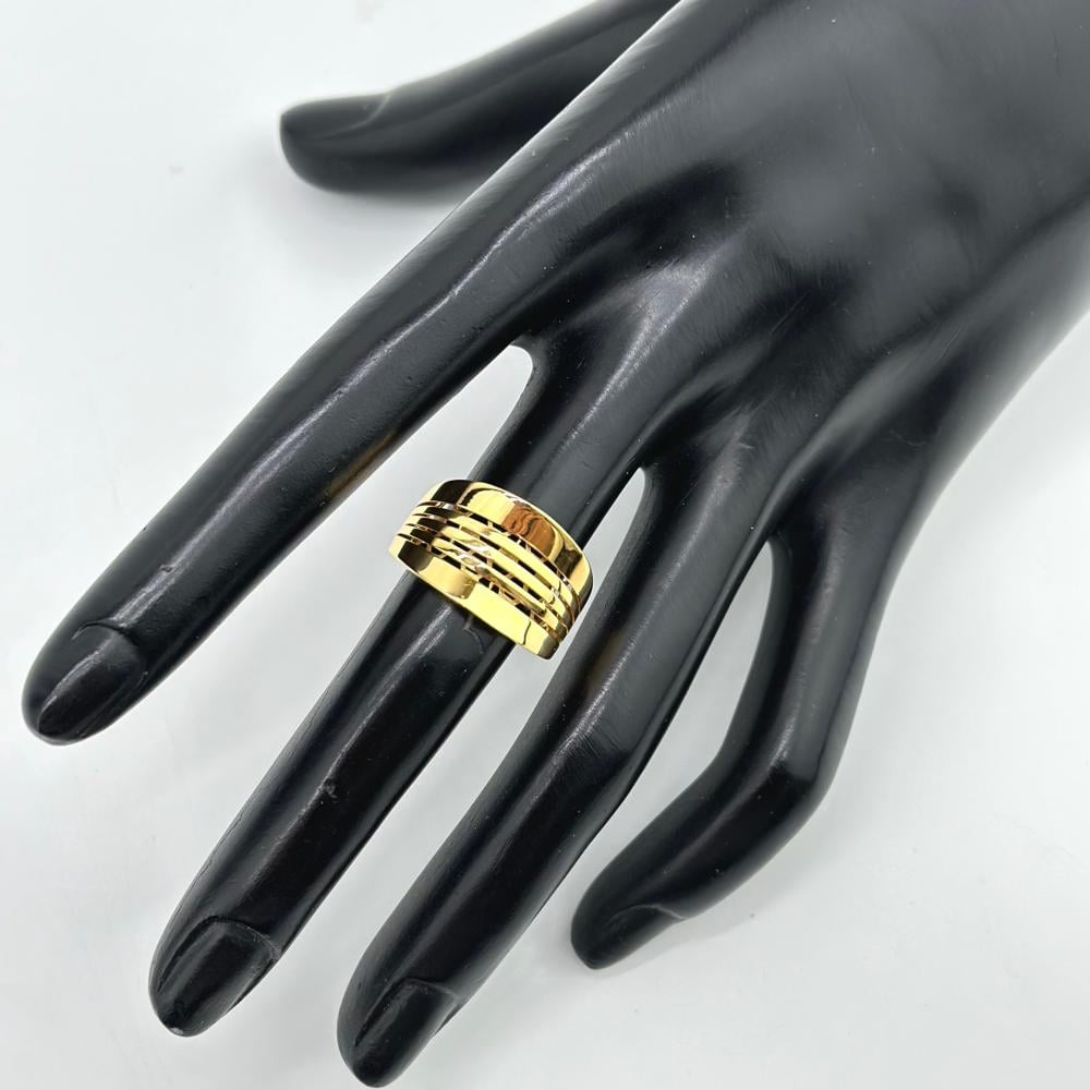خاتم ذهب هو قطعة مجوهرات أنيقة وفريدة تتميز بتصميمها العصري والبسيط. يتكون الخاتم من شبكة ذهبية دقيقة، حيث تتداخل الخطوط بشكل منتظم لتشكيل نمط شبكي جميل، مما يمنح الخاتم مظهرًا مميزًا وجذابًا. الخاتم خالي من الفصوص أو الأحجار الكريمة، مما يبرز جمال الذهب الأصفر ويمنح القطعة مظهرًا أنيقًا وراقيًا دون الحاجة إلى تفاصيل معقدة.