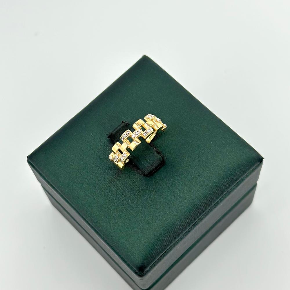 خاتم "الزمن" بتشكيل يشبه سوار الساعة حيث تم تصميمه بشكل يجعله يحيط بالإصبع بشكل مريح, وخطوط سلسة ومموجة تعبر عن حركة الزمن ,يحتوي على نقوش وتفاصيل دقيقة ,ببريق جميل يعكس الضوء المحيط به .