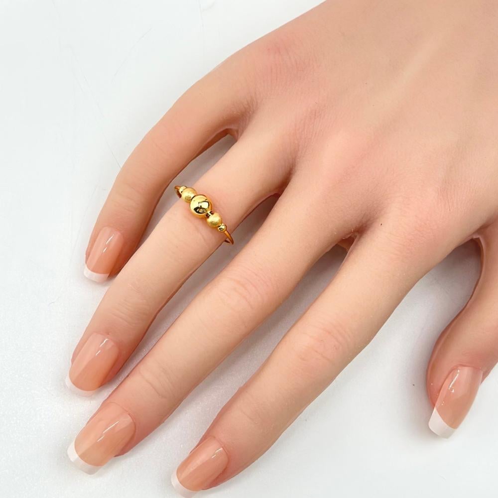 خاتم "الكرات الإيطالية" هو تجسيد للأناقة والرقي مصنوع من الذهب عيار 21, يتكون من مجموعة كرات صغيرة متناظرة باللون الأصفر الدافئ تجذب الأنظار, مصقولة بدقة لتعكس الضوء بشكل إنسيابي ورائع.
