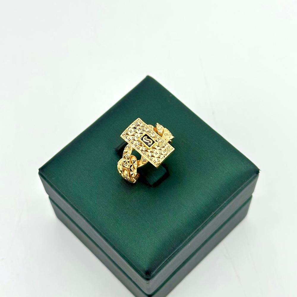 خاتم من الذهب الأصفر عيار 18 بتصميم جنزير أنيق ، يجمع بين الجرأة والفخامة، ليضفي لمسة مميزة من الأناقة على يدك.
