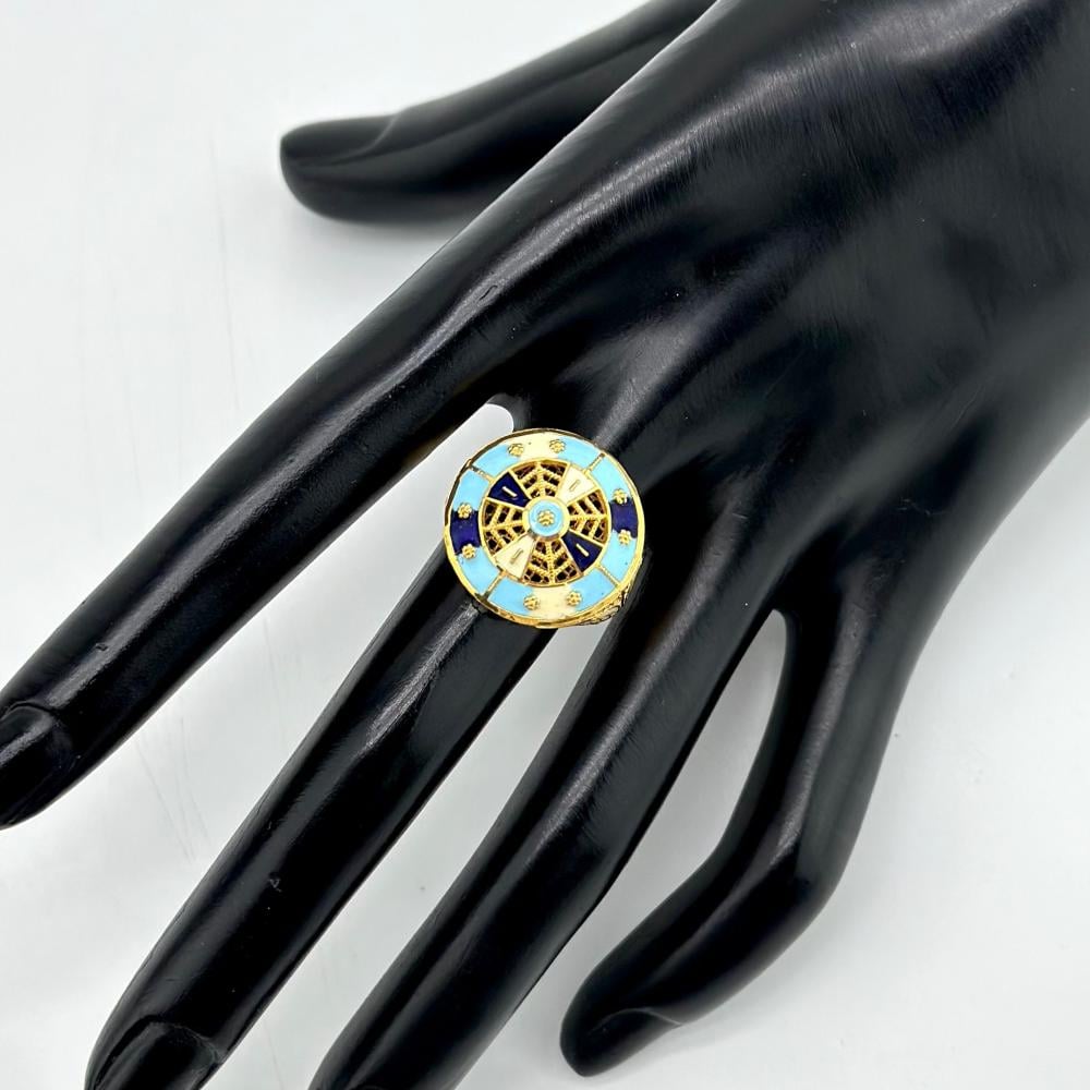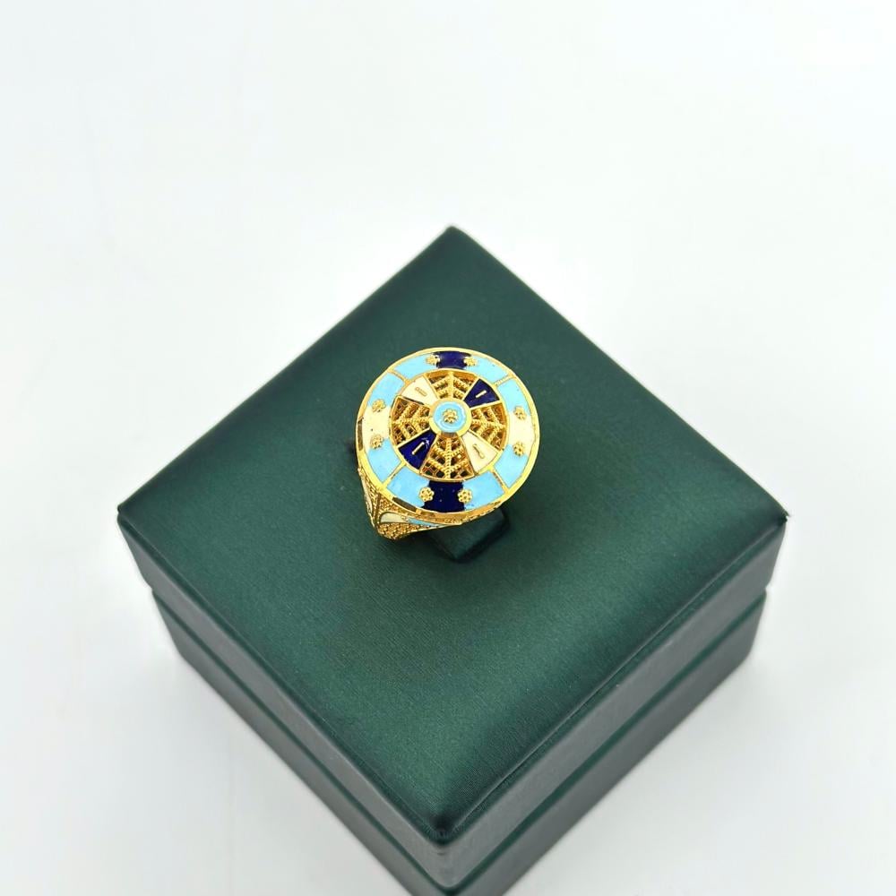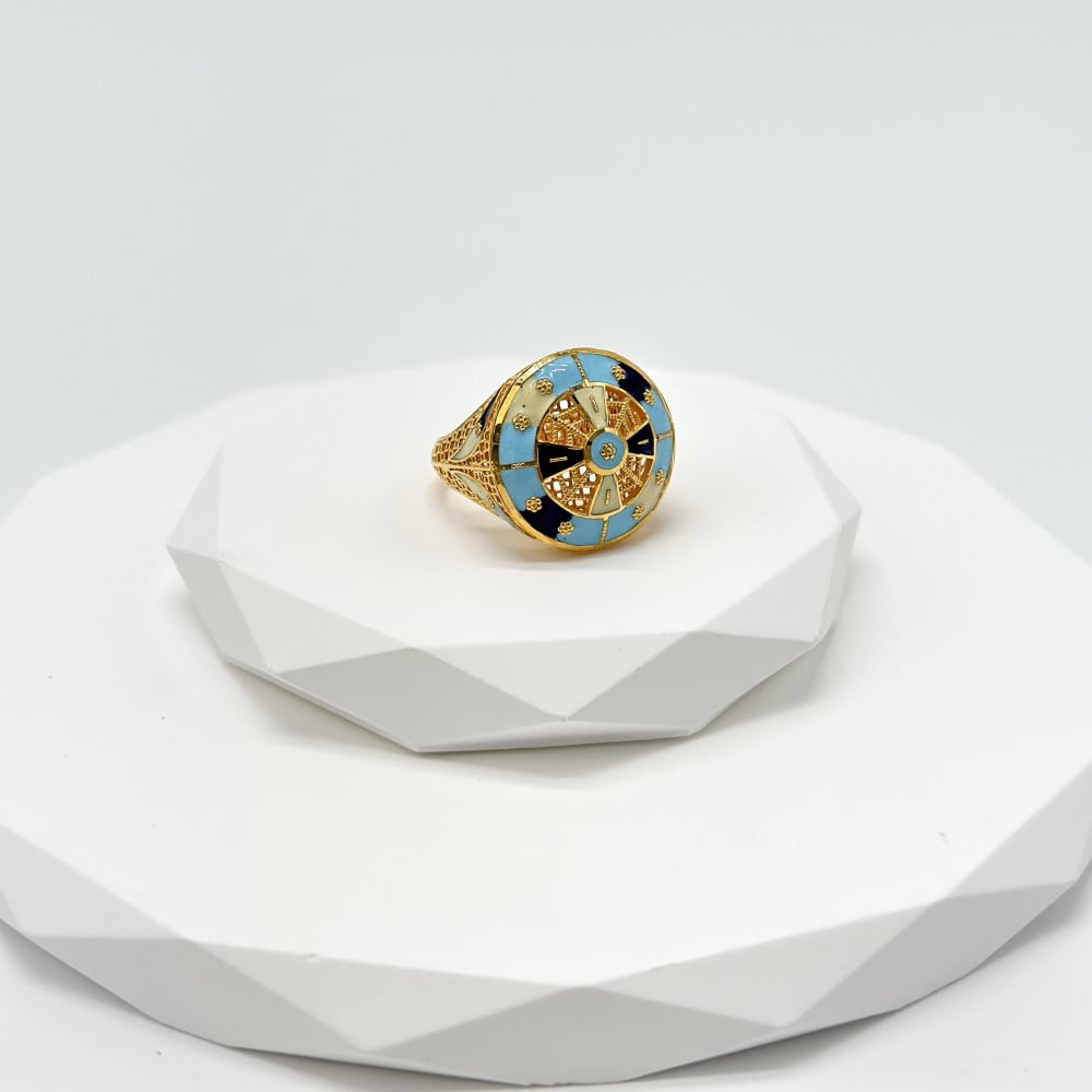 يتميز الخاتم بنقش هندي تقليدي وألوان مينا زاهية، يجسد جمال الفن الهندي ويضفي لمسة ثقافية ساحرة على إطلالتك