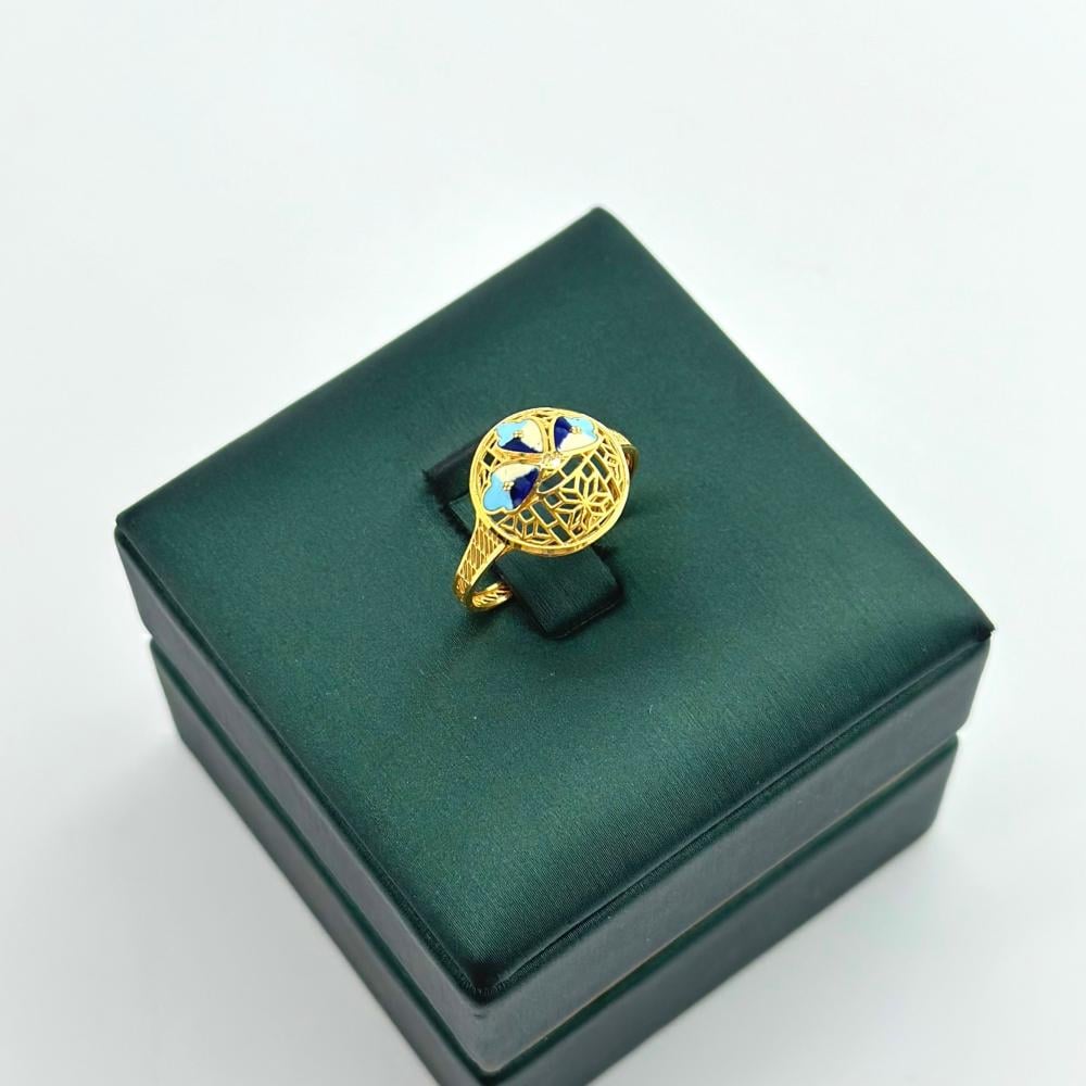 خاتم ذهب عيار 21 بتصميم هندي مزين بالوان المينا الانيقة ( 1.8 جرام - RI0661 )