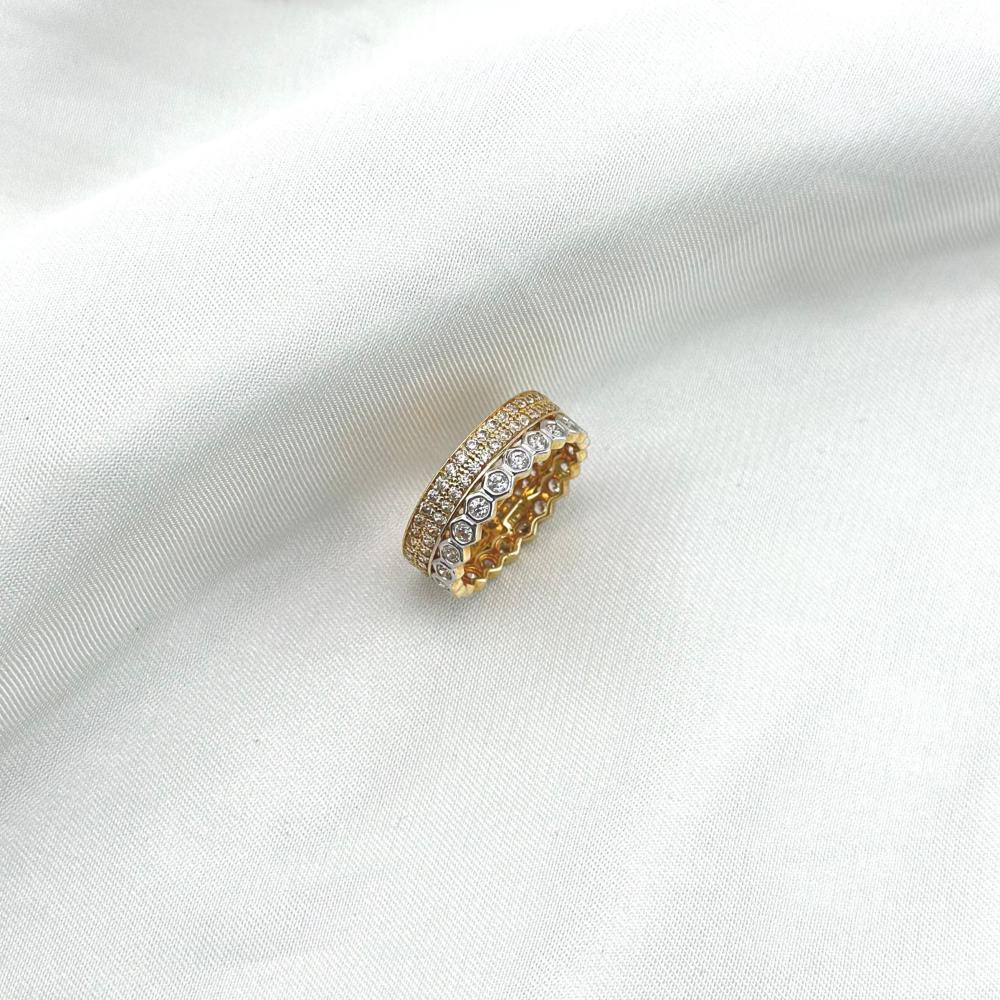 تُعتبر دبلة "بريق الماس" تجسيدًا للفخامة والرقي، حيث تجمع بين تصميم أنيق وفصوص زركون متلألئة تضفي لمسة ساحرة. تتميز هذه الدبلة بتصميم إيطالي فاخر، مما يجعلها الخيار المثالي لكل من يسعى لارتداء قطعة تعكس الذوق الرفيع.