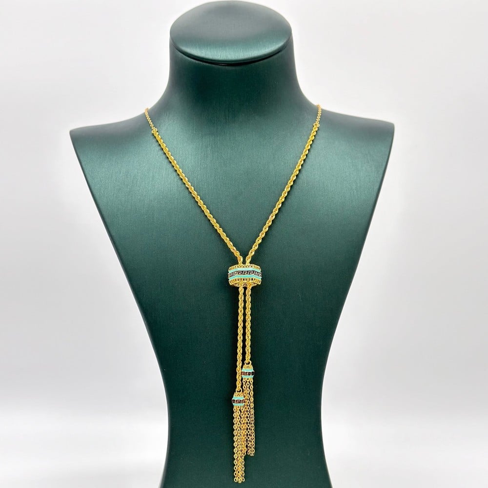 تعد هذه السبحة من مجوهرات الشلوي أكثر من مجرد قطعة مجوهرات، إنه تروي قصة عميقة من الأناقة والجمال. عندما تلتف السلسلة الذهبية برقتها حول عنقك، تشعرين بلمسة الفخامة تنساب في كل خلية من جسدك.