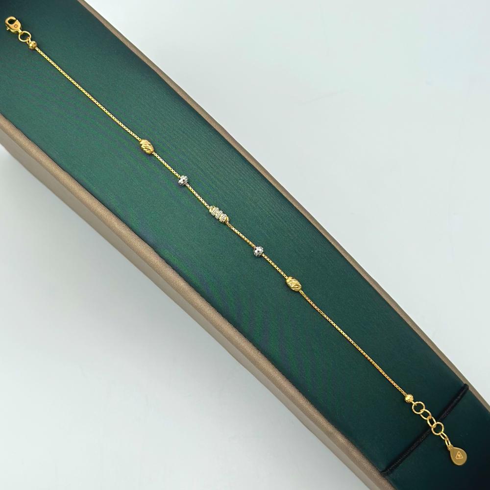 اسوارة ذهب عيار 21 بتصميم هندسي ملفت، تجمع بين ألوان الذهب الأصفر والأبيض. تبرز الأشكال الهندسية بدقة وأناقة، مما يضفي لمسة من الفخامة والتميز على معصمك، لتكون خيارًا مثاليًا لإطلالة راقية وجذابة في كل مناسبة.✨