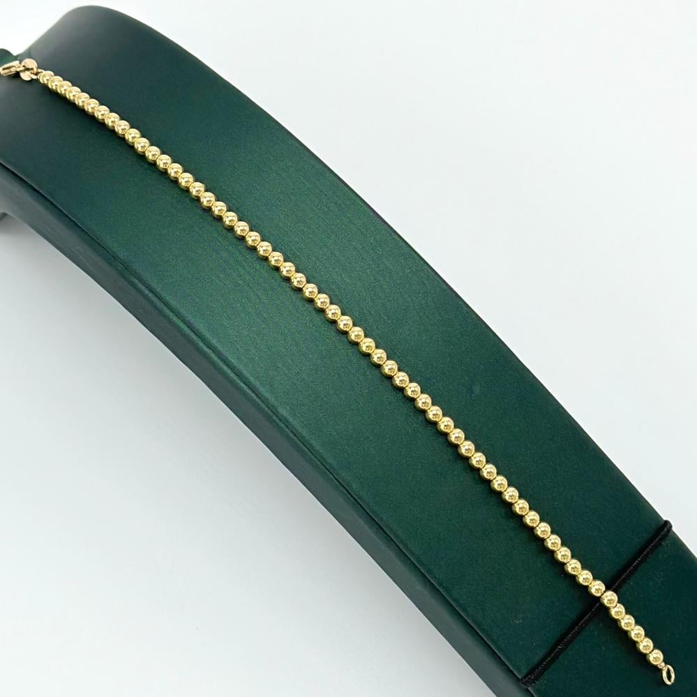 استعدي لتُضفي لمسة من السحر والرقي على إطلالتك مع أسوارة ذهبية عيار 18 من مجوهرات الشلوي. تتميز هذه الأسوارة بتصميم فريد يجمع بين الأناقة والبساطة، حيث تزينها كرات ذهبية متناغمة تأخذك في رحلة ساحرة من الأناقة والجمال. بريق الذهب يتلألأ بأنواره الساحرة، متناغمًا مع تألق الكرات لتخلق مظهرًا ساحرًا ومميزًا. ارتدي هذه الأسوارة لتكملي إطلالتك بلمسة ناعمة من الجمال والرقي في كل مناسبة.