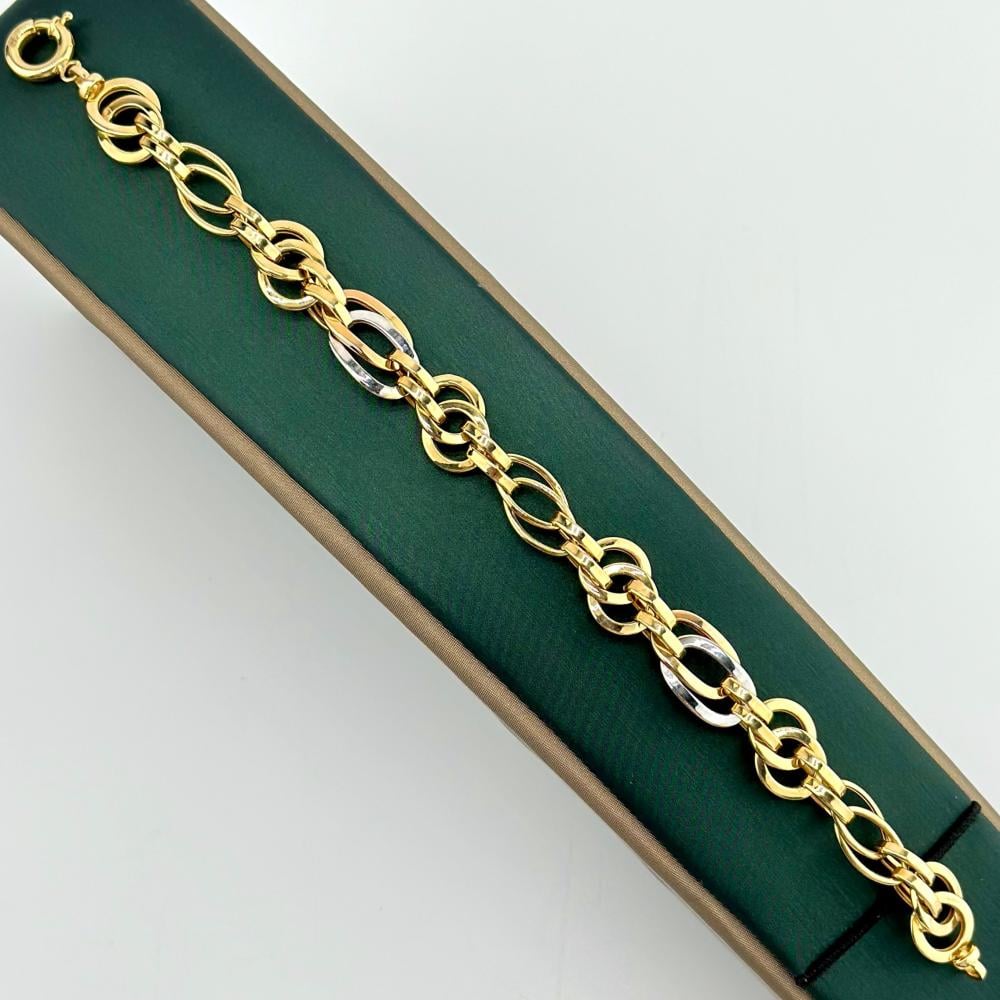 أسوارة جنزير من الذهب الأصفر عيار 18 من مجوهرات الشلوي، تجمع بين التصميم الكلاسيكي والبريق الفاخر، لتضفي على معصمك لمسة من الأناقة الدائمة.