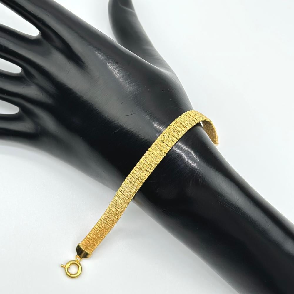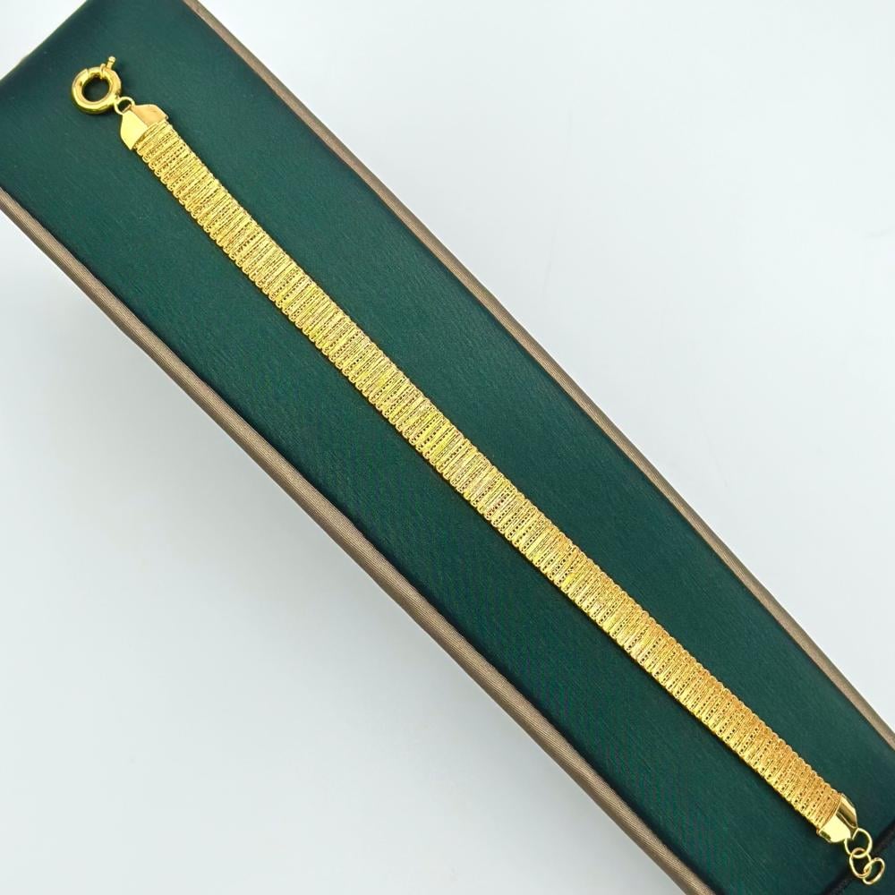 اكتشفي سحر الأناقة مع اسوارة ذهب عيار 21 بخطوط من الذهب الحريرية الصفراء, يضفي على معصمك لمسة من الفخامة والتميز. هذه الاسوارة هي الخيار الأمثل لإبراز جمالك وأناقتك في كل مناسبة.