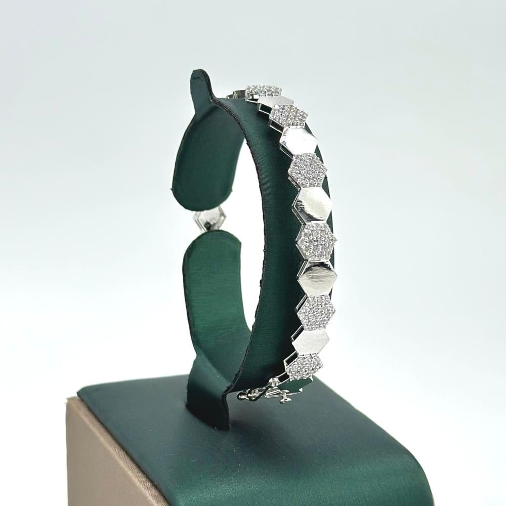 سوارة "مصفوفة الأضواء" سوار فاخر مصنوع من الذهب عيار 18، يتميز بتصميم هندسي فريد على شكل معينات متداخلة، تم تنسيقها بدقة لتشكل لوحة فنية متناسقة, يجمع هذا السوار بين الأناقة الكلاسيكية والابتكار العصري، حيث تم تصميم المعينات بمزيج من الذهب المصقول اللامع والمعينات المرصعة بفصوص الزركون، مما يمنح السوار بُعدًا بصريًا جذابًا.