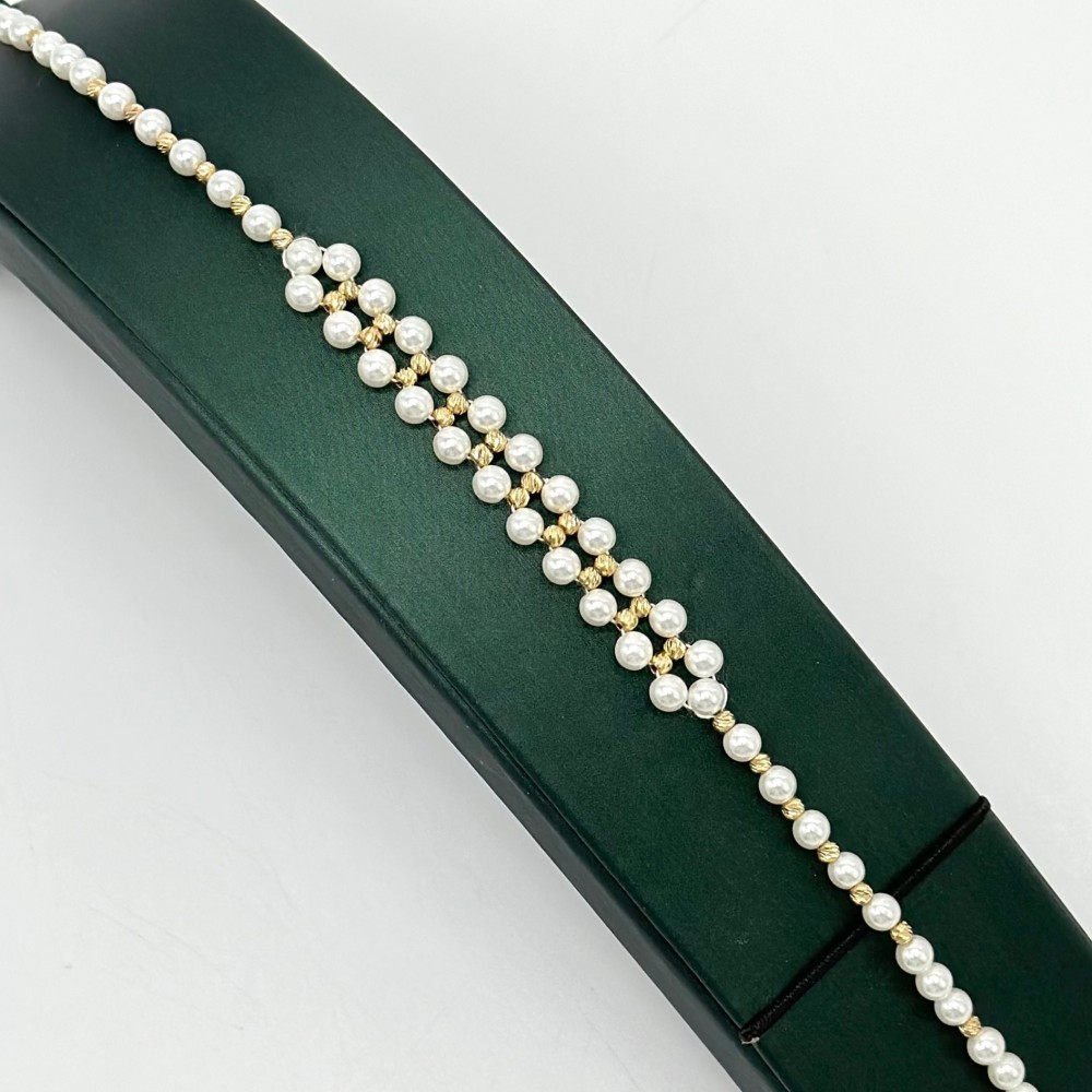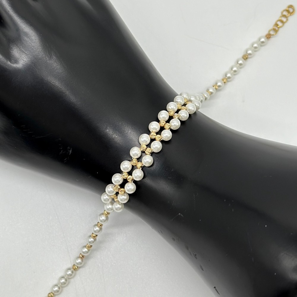 تأملي تلك السوار الساحر، يجمع بين جمال لآلئ البحر وبريق كرات الليزر، مزيجًا فريدًا يعكس رونقاً لا مثيل له. كل لؤلؤة تنبض بأناقة وسحر، متراقصة بين أضواء الليزر التي تتلألأ كالنجوم في السماء. هذا السوار يعبر عن شخصيتك المتألقة والمفعمة بالحيوية، مما يجعله قطعة فنية تعكس روحك الجريئة والمميزة. ارتديه ودعيه يرافقك في كل مغامرة، مضيئاً طريقك بأنواره الساحرة وجماله الفريد.