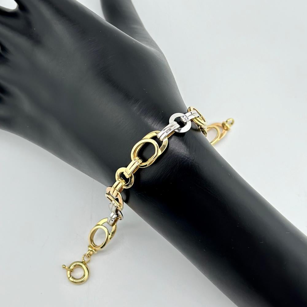 أسوارة من الذهب المكس عيار 18 بتصميم إيطالي أنيق، تجمع بين الأصالة والحداثة في قطعة واحدة. تضفي لمسة من الفخامة والرقي على معصمك، لتكمل إطلالتك بأسلوب راقٍ ومتجدد.
