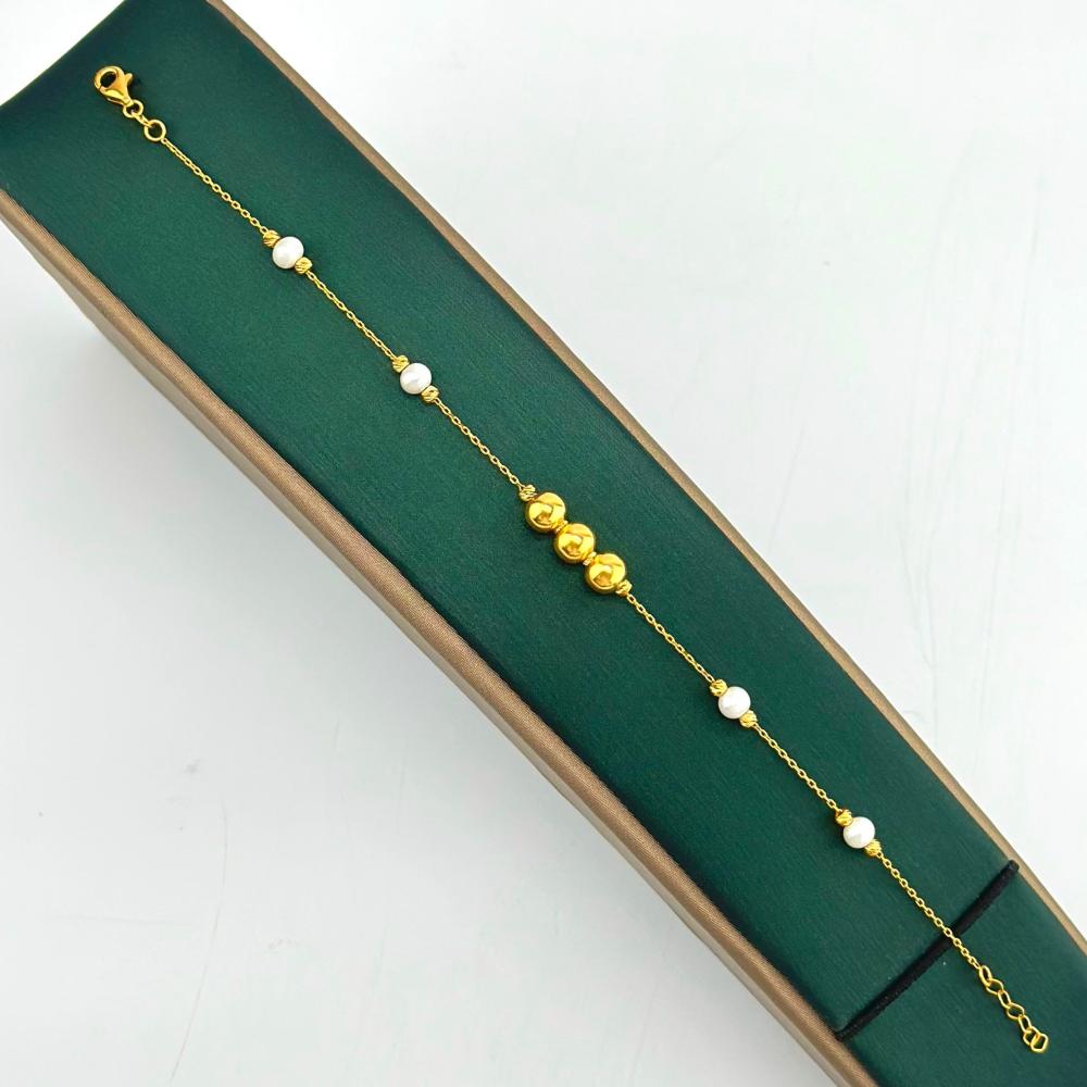 تضفي أساور الذهب العيار 21 المطعمة بلآلئ لمسة من الأنوثة والرقي على إطلالتك، حيث تجسد أناقة وجمال الطبيعة بكل فخر ورقي.