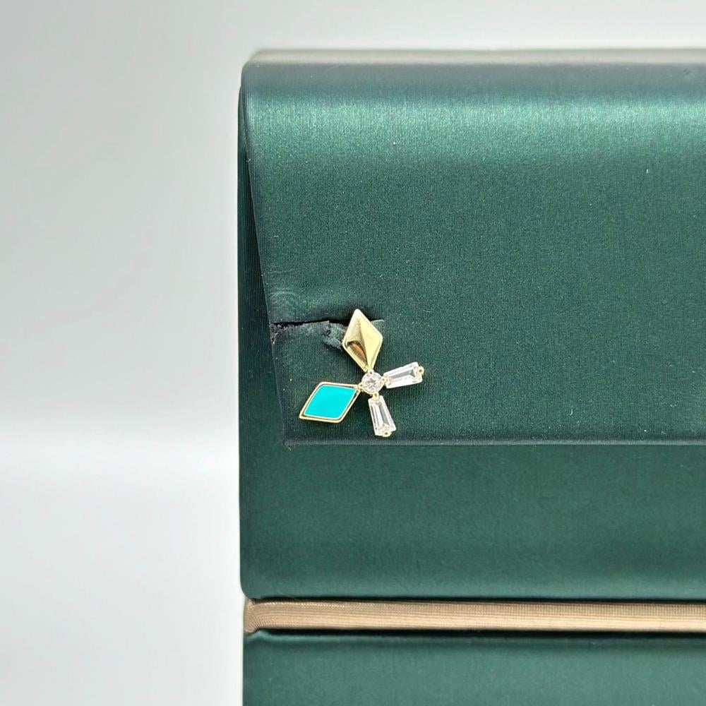 طقم تصميم الماس مطعّم بالوان المينا ( 3.1 جرام - عيار 18 - SE00496 )