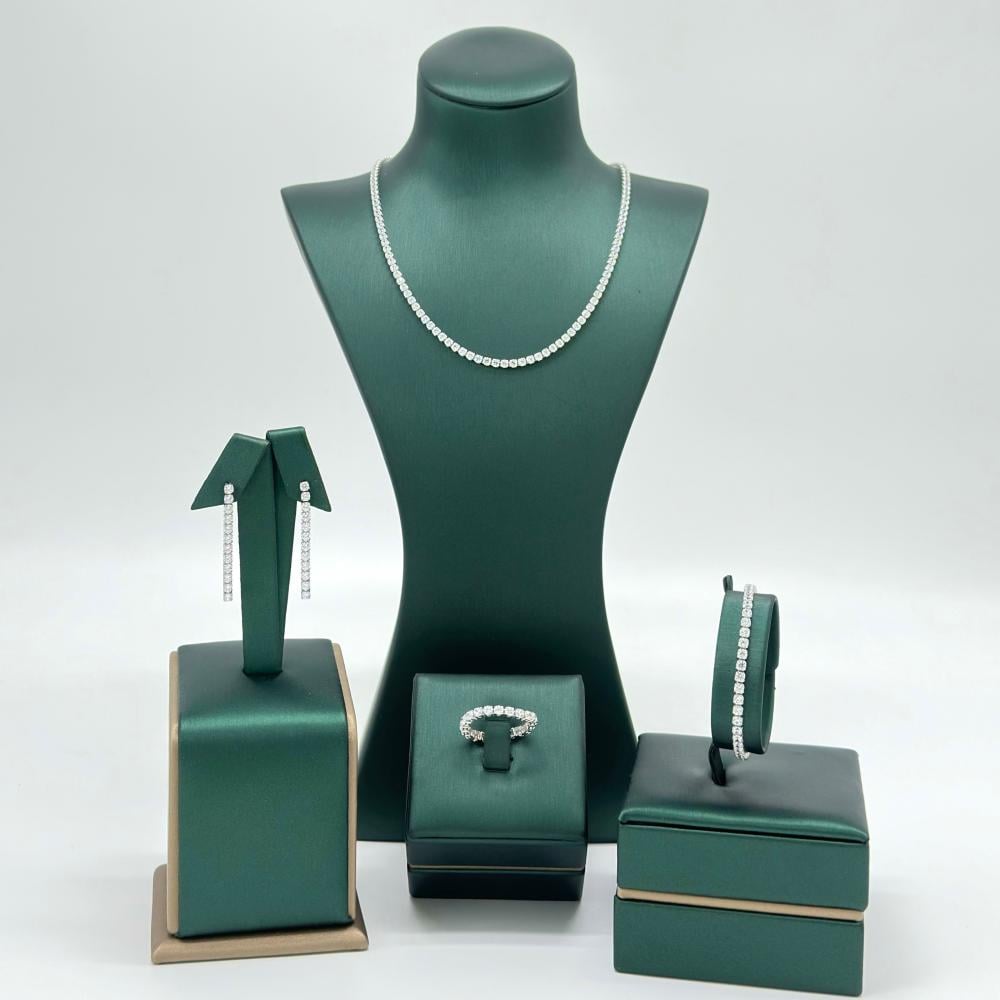 ارتقي بإطلالتك مع طقم التنس الفاخر من الذهب الأبيض عيار 18 من مجوهرات الشلوي. يتميز هذا الطقم بفصوص الألماس اللامعة التي تعكس الضوء بشكل رائع، مما يمنحك بريقًا لا يقاوم. تصميمه المتقن يجمع بين الرقي والعصرية، ليكون الخيار المثالي للمناسبات الراقية. دع هذا الطقم يعبر عن ذوقك الرفيع وأناقتك المتميزة، ويضفي لمسة من الفخامة على كل لحظة ترتدينه فيها.✨