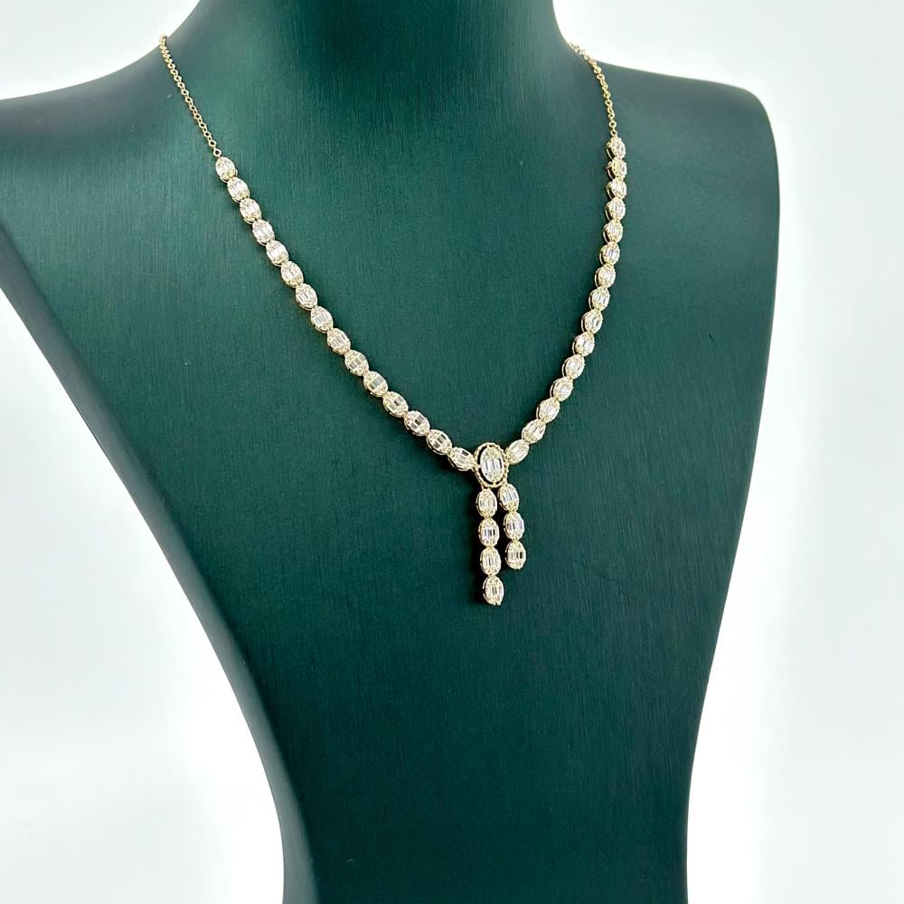 طقم ذهب أصفر عيار 18 من مجوهرات الشلوي يجمع بين الفخامة والأناقة بتصميم يضم فصوص الزركون اللامعة وقصات الباقيت البديعة. كل قطعة مصممة بدقة متناهية لتضفي لمسة من التميز والرقي على إطلالتك. تألقي في المناسبات الخاصة مع هذا الطقم الذي يجمع بين الكلاسيكية والعصرية في تصميم فريد وجميل.✨