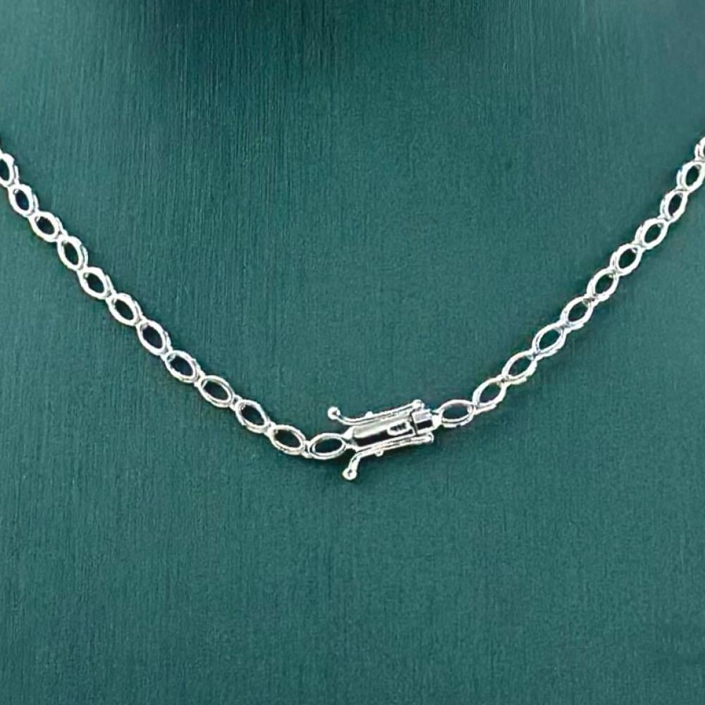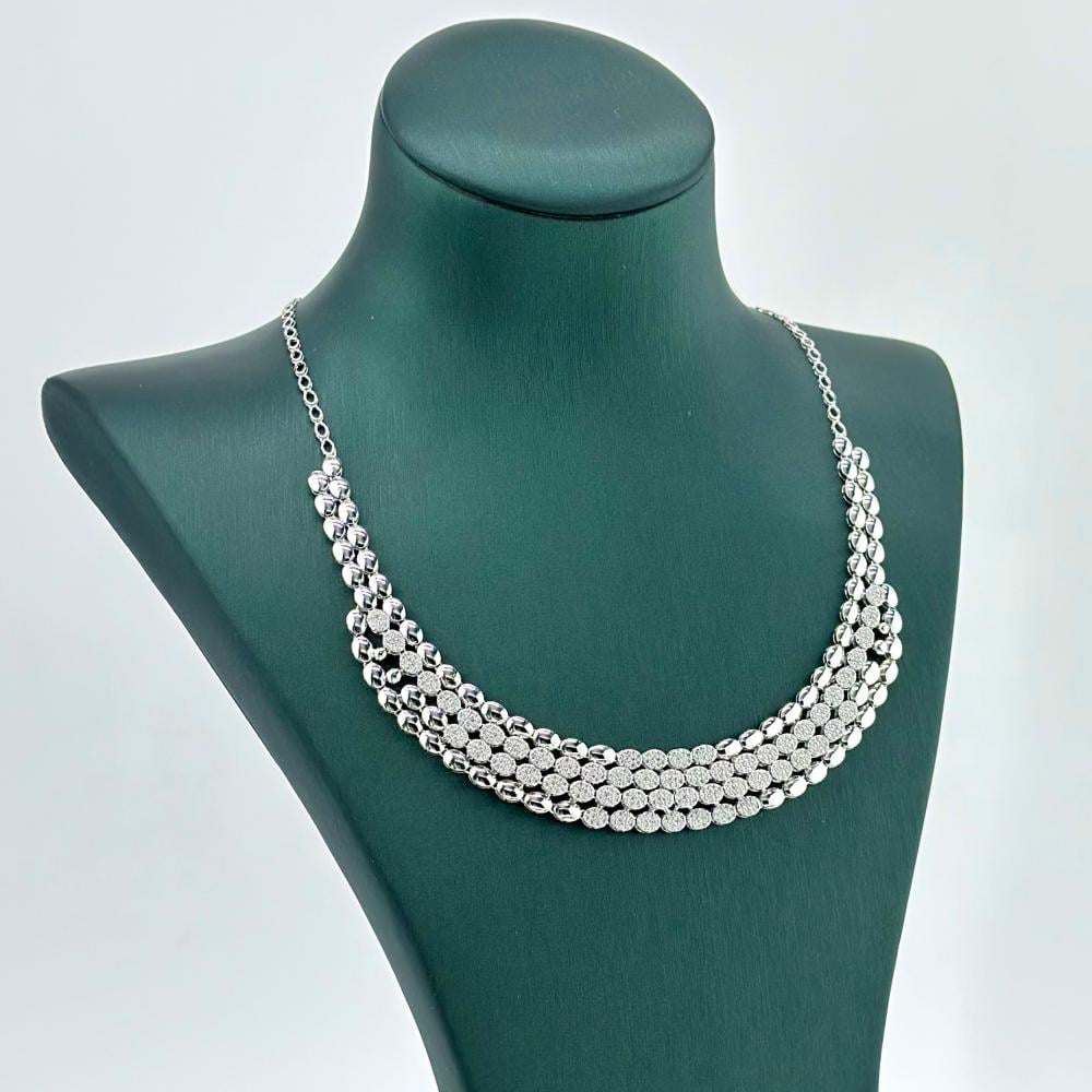 طقم "الأميرة" مصنوع من الذهب الأبيض عيار 18 بتصميم جذاب يشبه طوق الأميرات، وتزينه فصوص الزركون بتصميم الألماس . يجمع هذا الطقم بين بريق الألماس ورونق الأشكال الأنيقة، ليضفي لمسة من السحر والرقي على إطلالتك. قطعة مثالية تعبر عن الفخامة والأنوثة بكل تفاصيلها.