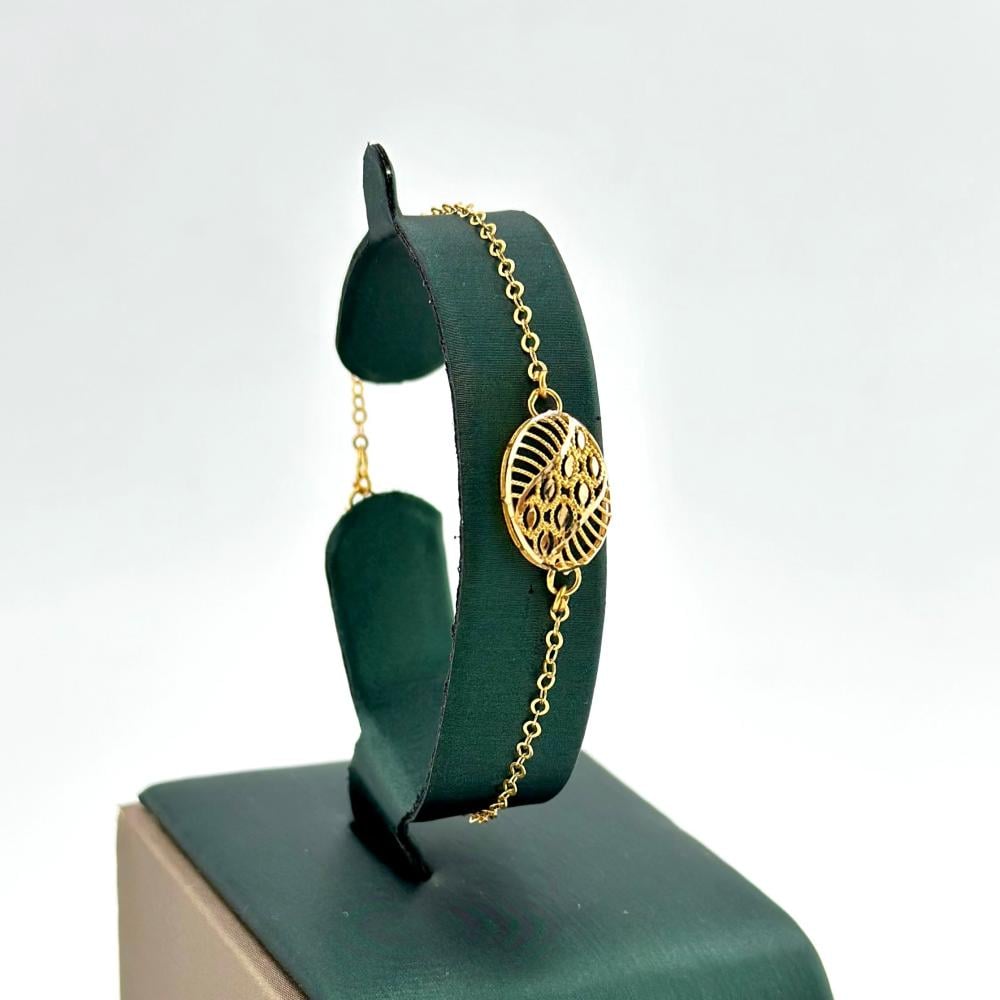 طقم ذهب عيار 21 بتصميم ماسي أنيق، مصنوع من الذهب الأصفر. يجمع هذا الطقم بين الفخامة والتميز، حيث يتألق كل قطعة بتفاصيلها الدقيقة ولمساتها الراقية، ليكون إضافة مثالية لإطلالتك في المناسبات الخاصة.