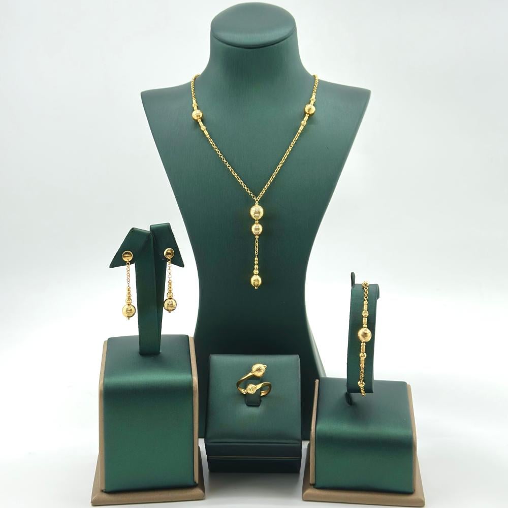 طقم ذهب مزين بكورات الليزر ( 15.0 جرام- عيار 21 - SE00753 )