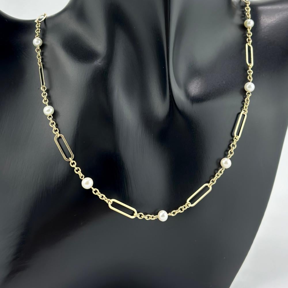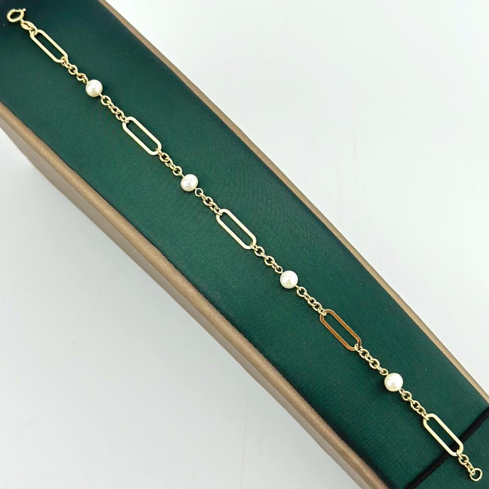 طقم من الذهب عيار 18، يجمع بين عقد وأسوارة مزيّن بحبات اللؤلؤ الناعمة، ينساب بلمسة من الفخامة والرقي حول العنق والمعصم. تصميم يجمع بين تألق الذهب وبريق اللؤلؤ، ليضفي على إطلالتك جمالاً كلاسيكياً وأناقة لا تُنسى.✨