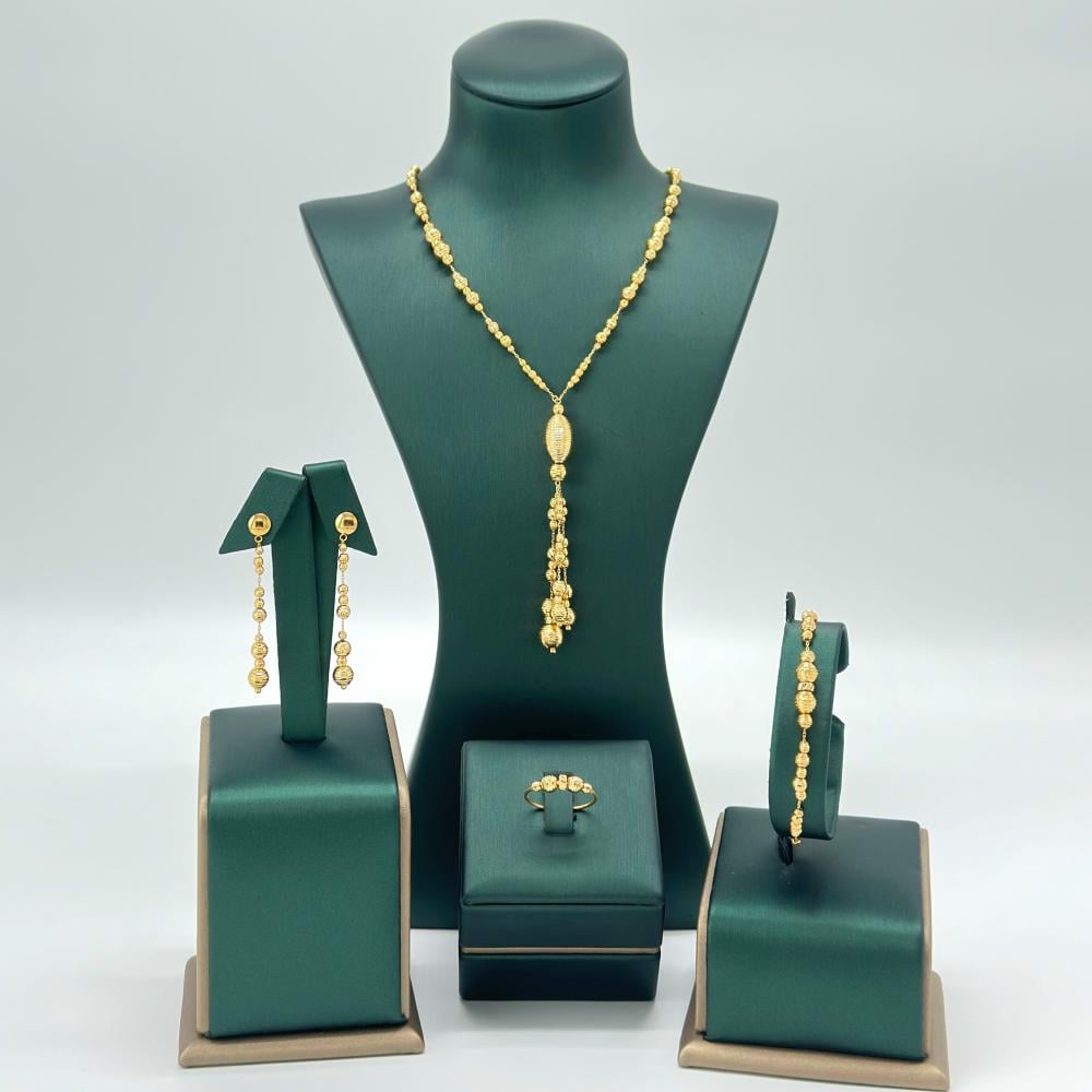 - يحتوي الطقم: عقد - اسوارة - خاتم - حلق