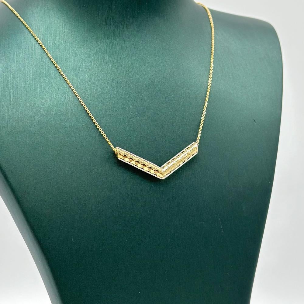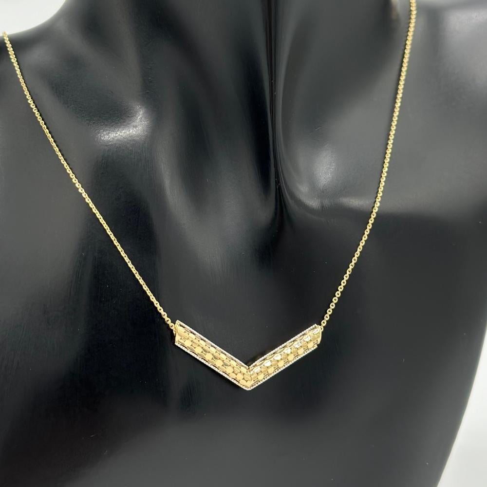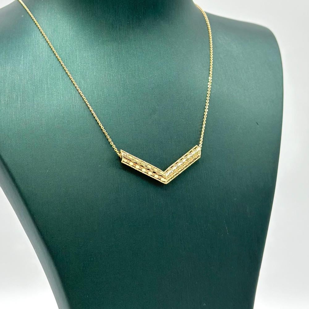 هذا العقد الذهبي الرائع عيار 18 يأتي بتصميم فريد يجسد الجمال والقوة في آن واحد. يأخذ شكل السهم، وهو رمز للشجاعة والإيمان بالنفس، مما يمنحه طابعًا ملهمًا ومليئًا بالحيوية. لامعًا بلمعة الذهب الأصفر عيار 18، ينبعث العقد ببريق خاص يجذب الأنظار ويخطف الأبصار. يتميز بتصميم بسيط وأنيق، حيث لا يحوي أي فصوص أو أحجار، مما يضيف له جاذبية وأصالة فريدة.