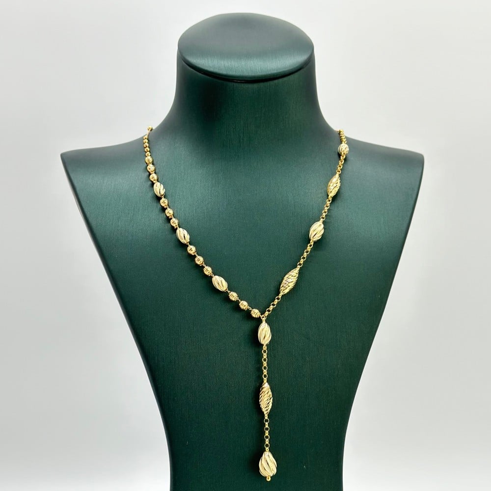ارتدي عقد الذهب وكأنك تأمري العالم بجمالك. يتميز بقلادة جذابة ومتألقة تحمل في طياتها سحرًا لا يقاوم. سيأسر هذا العقد الأنظار ويثير إعجاب الجميع بتصميمه الفريد الذي يجمع بين الأناقة والجمال.