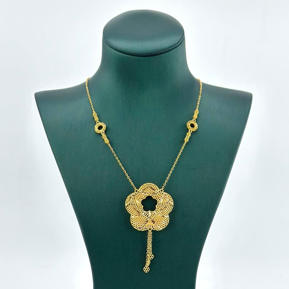 عند ارتداء هذا العقد، ستشعرين بالجمال والأناقة تتغلغلان في جسدك. بريق الذهب اللامع سيضفي لمعة ساحرة على بشرتك، مما يجعلك تشعرين بالثقة والأنوثة بمجرد لمسه. ستتميزين بأناقة فريدة وسحر لا مثيل له، حيث يبرز هذا العقد جمالك الطبيعي ويعكس ذوقك الرفيع وشخصيتك القوية. سيكون لهذا العقد دورًا مميزًا في إضفاء لمسة من السحر والتألق على إطلالتك، مما يجعلك محط أنظار الجميع في أي مناسبة تحضرينها.