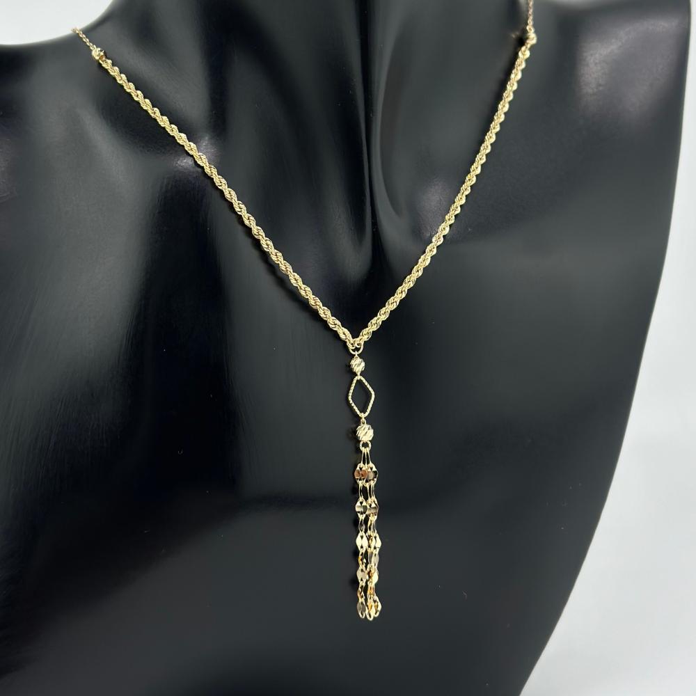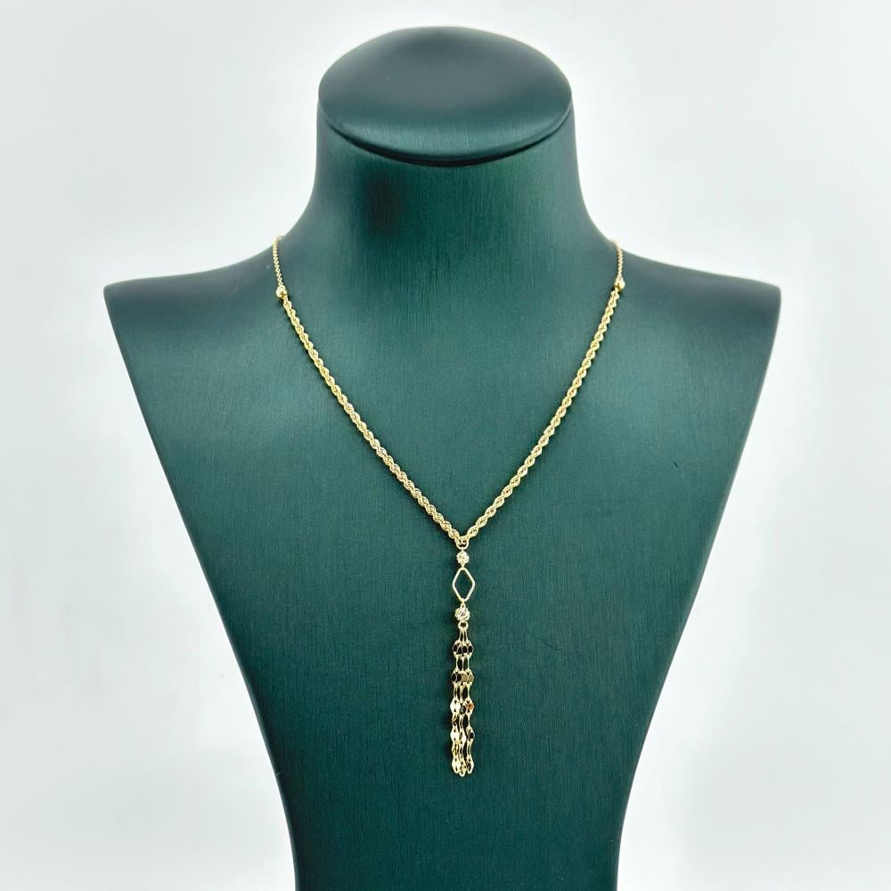على مساحة العقد الفريد من نوعه, تضيء كرات الليزر بألوان متألقة من الذهب الأصفر، و ينسدل السلسال بشكله المبروم مما يضفي على العقد تألقاً متجدداً وفريداً. هذا التنوع في الألوان يعكس جمال الحياة وتنوعها، مما يمنحك إطلالة متميزة ومفعمة بالأناقة والجاذبية.✨