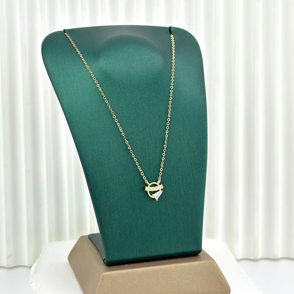 عقد ناعم من الذهب عيار 18 بتصميم ماسي دائري، يعكس بريقًا خلابًا وأناقة لا تضاهى. تتألق تفاصيله البسيطة بحبات الزريكون اللامعة، ليمنحك لمسة من الرقي والجمال تناسب كل إطلالة.✨