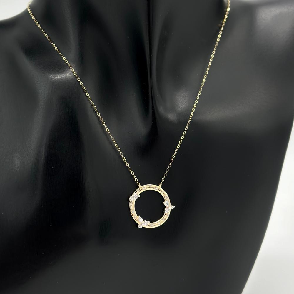 عقد دائرة الزهور ناعم تصميم الماس ( 1.3 جرام - عيار 18 - NE0860 )