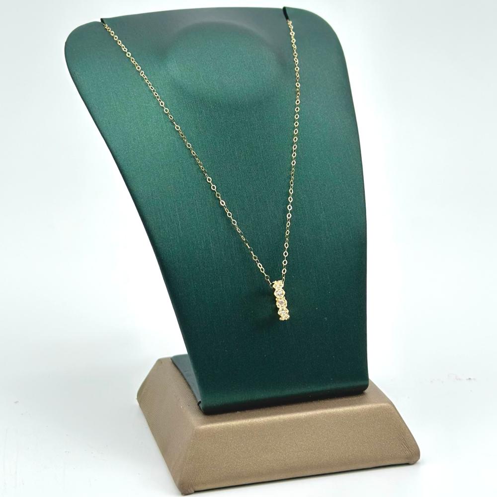 بفضل تركيبته الدقيقة وتفاصيله الرائعة، يضفي هذا العقد لمسة من الأناقة والجمال الخالص على عنقكِ، حيث يمزج بين سحر الذهب عيار 18 وبريق الزريكون الأنيق بتصميم يشبه بريق الالماس بكل تفاصيله.