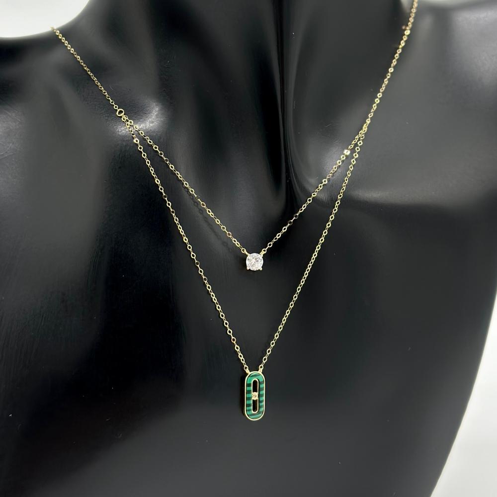 هذا العقد الذهبي عيار 18 من مجوهرات الشلوي يجسد الفخامة والأناقة بأسلوبه الفريد. مكون من دورين، يتألق الدور الأول بفص الزريكون الساطع، بينما يُضفي الدور الثاني سحرًا خاصًا بفضل حجره الملون الرائع. إنه قطعة تجميلية فريدة تضفي لمسة ساحرة على إطلالتك.✨